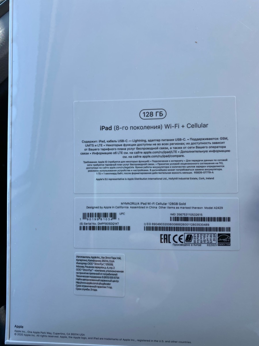 Планшет Apple iPad 8th Gen 2020 LTE, 10.2", 128GB, золотой