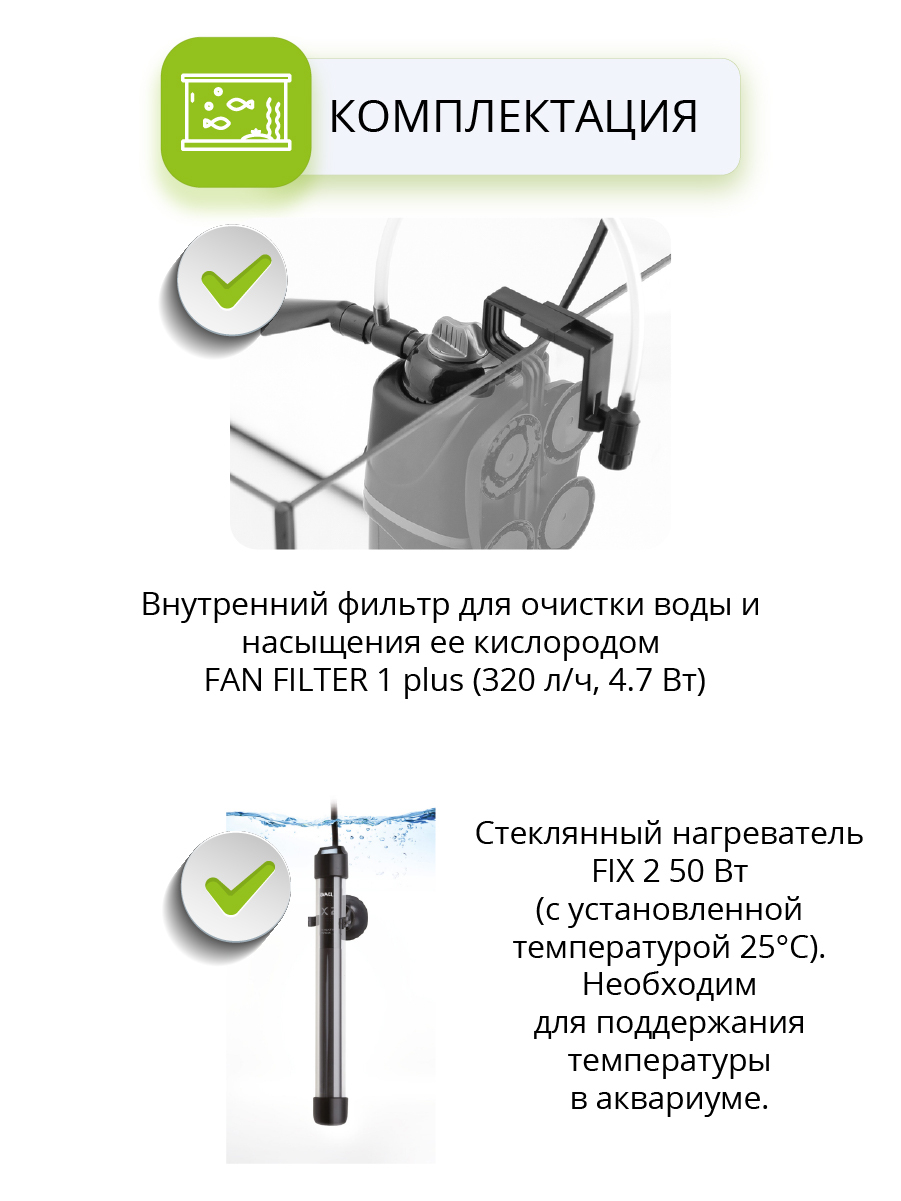AQUAEL SHRIMP SET DUO 49 литров черный, креветкариум, свет LED, фильтр, нагреватель