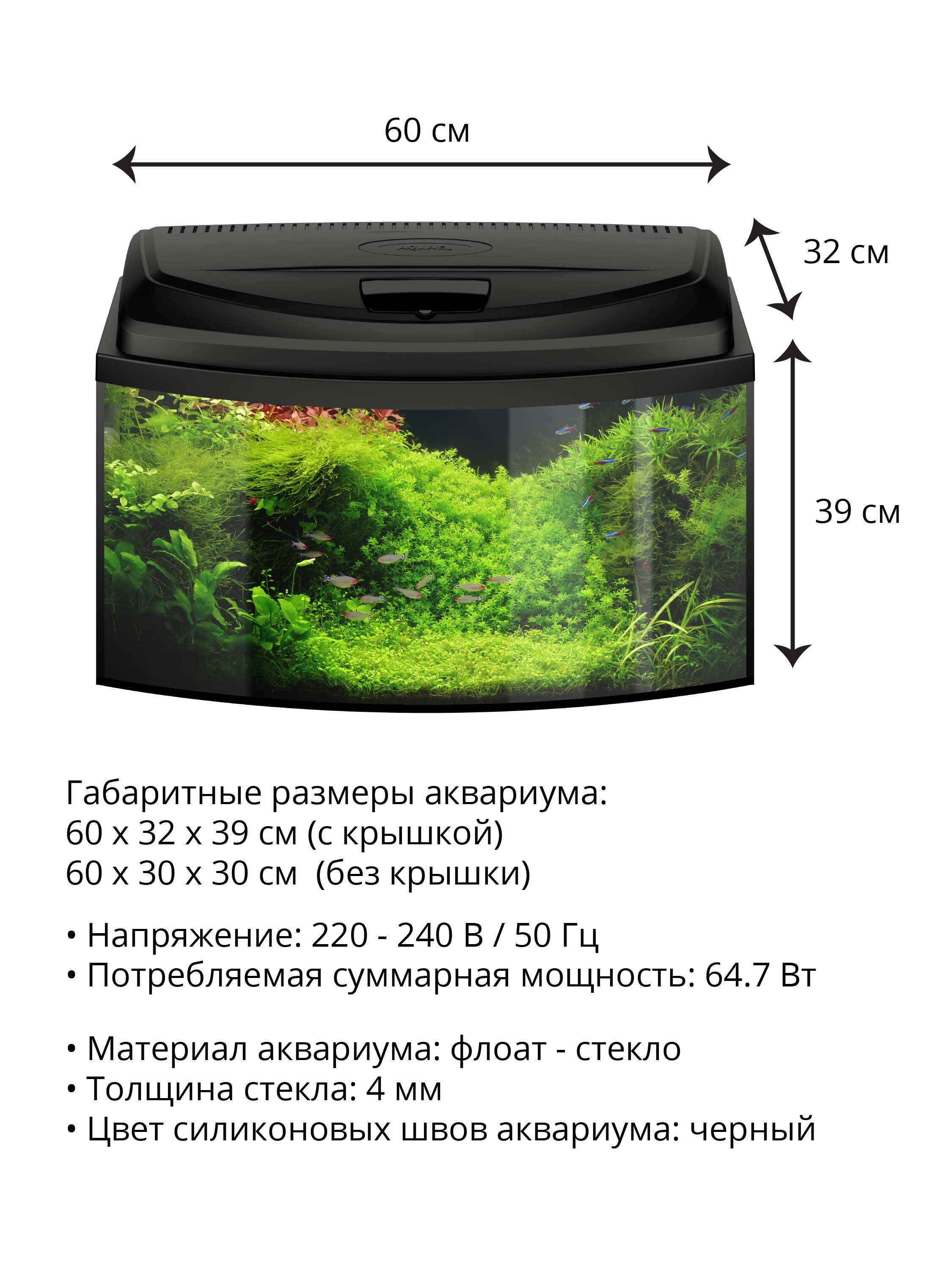Аквариум AQUAEL AQUA4START 60 фигурный, черный (45 л)