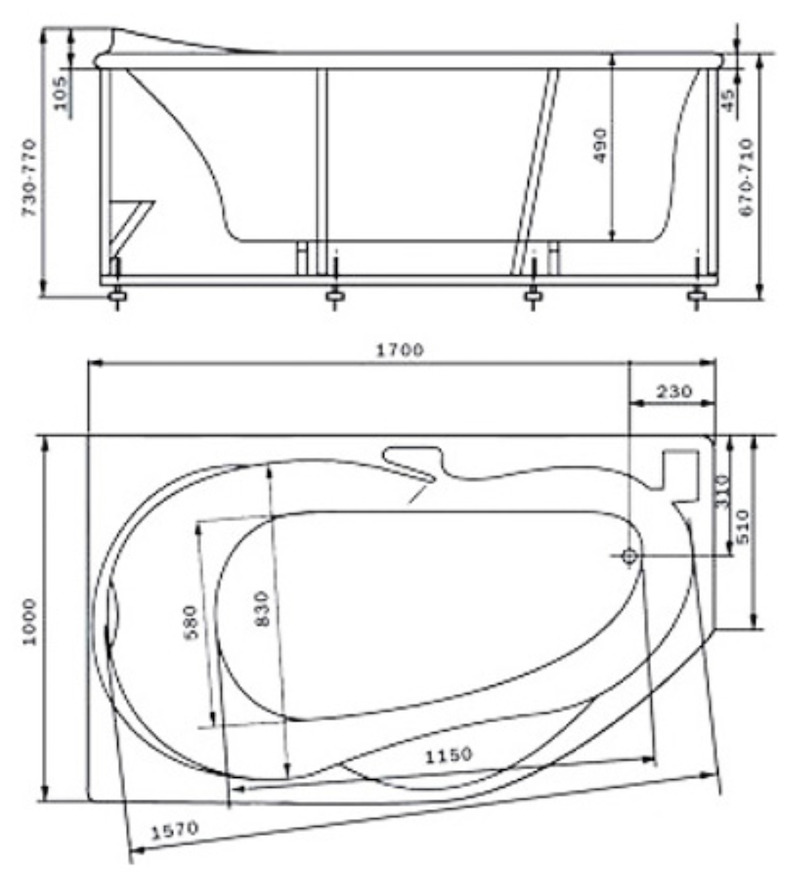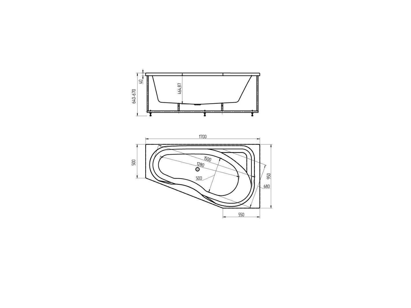 Ванна акриловая Aquatek Медея правая пустая с фронтальным экраном (вклеенный каркас)