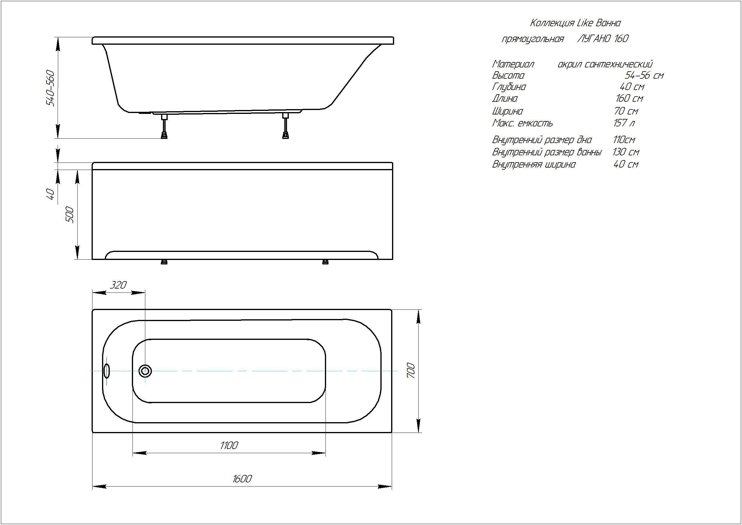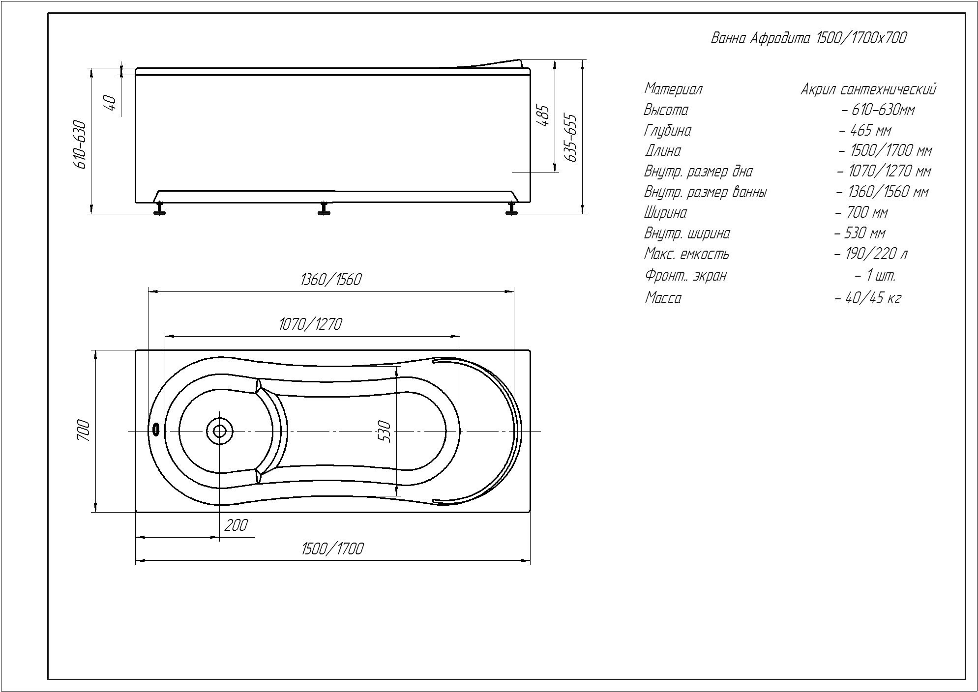 Ванна акриловая Aquatek Афродита 170 пустая с фронтальным экраном (слив слева, вклеенный каркас)