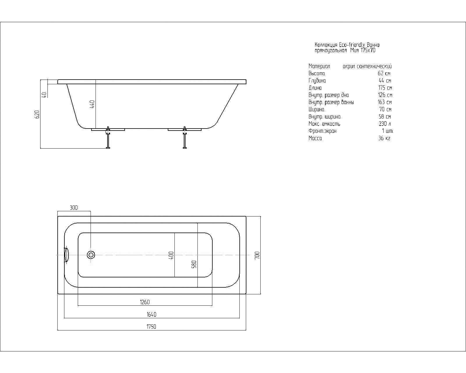 Ванна акриловая Aquatek Мия 175х70 MIY175-0000001 (без гидромассажа)