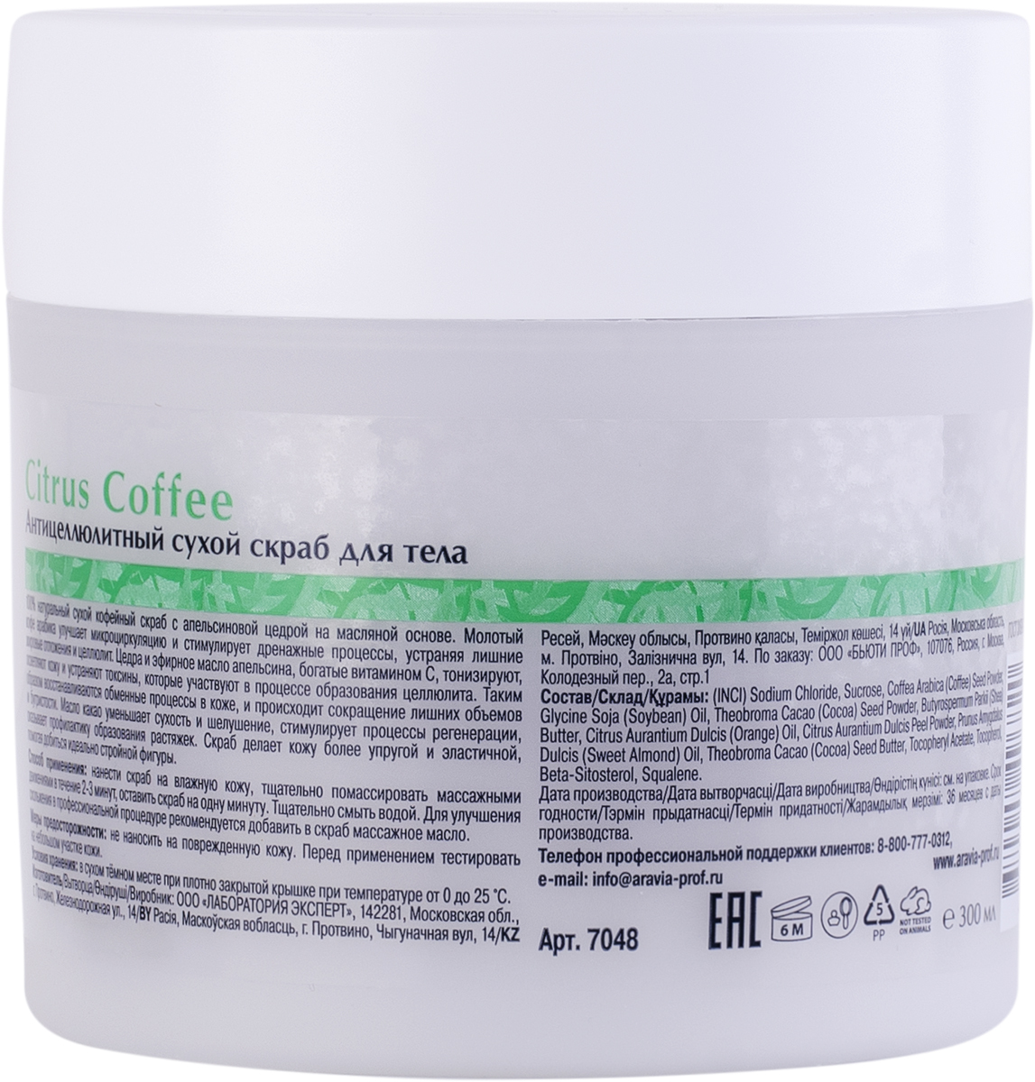 ARAVIA Organic Антицеллюлитный сухой скраб для тела Citrus Coffee, 300 г
