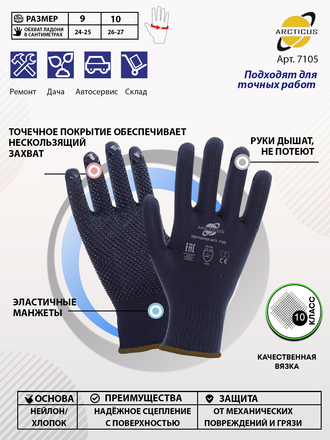 Перчатки защитные ARCTICUS, размер: 10, 2 пары