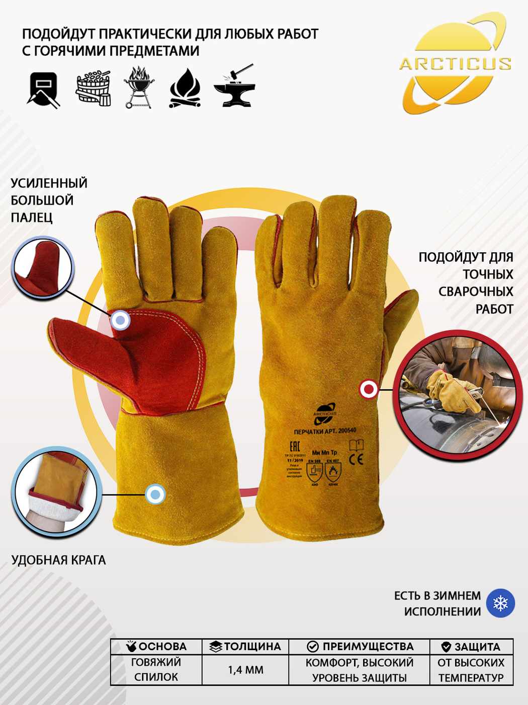 Защитные перчатки, Arcticus 200435 краги сварщика, от повышенных температур, размер 11
