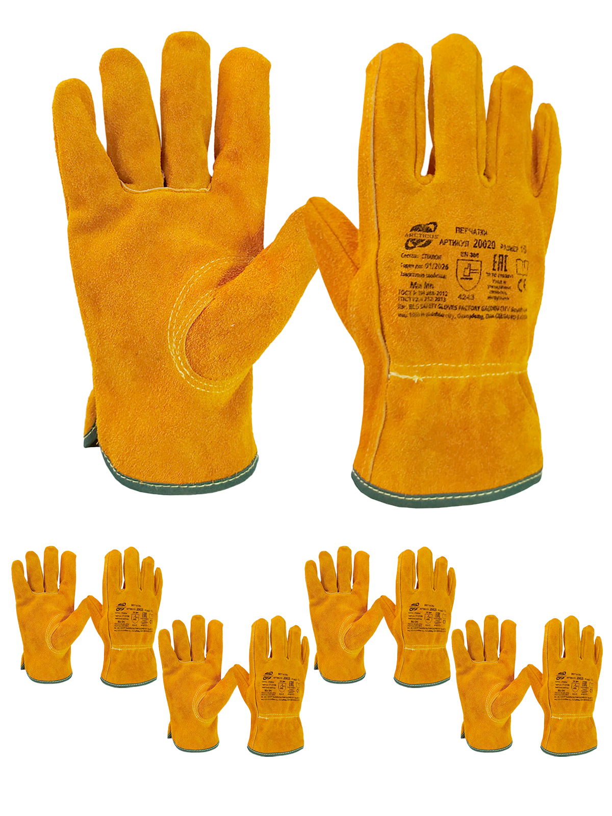 5 пар спилковых перчаток ARCTICUS, арт. 20020, размер 10