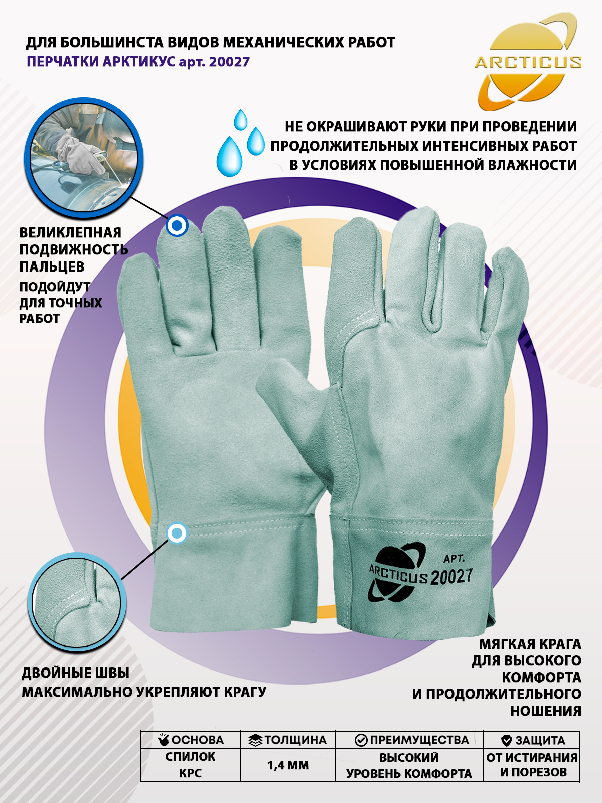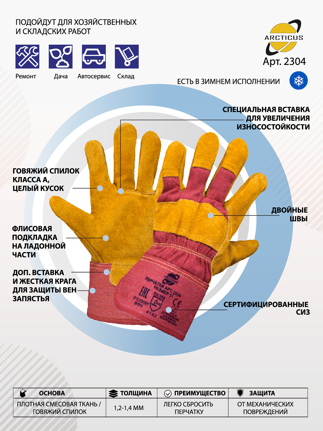 Перчатки защитные ARCTICUS 20027/2/5, размер: 10, 1 пара