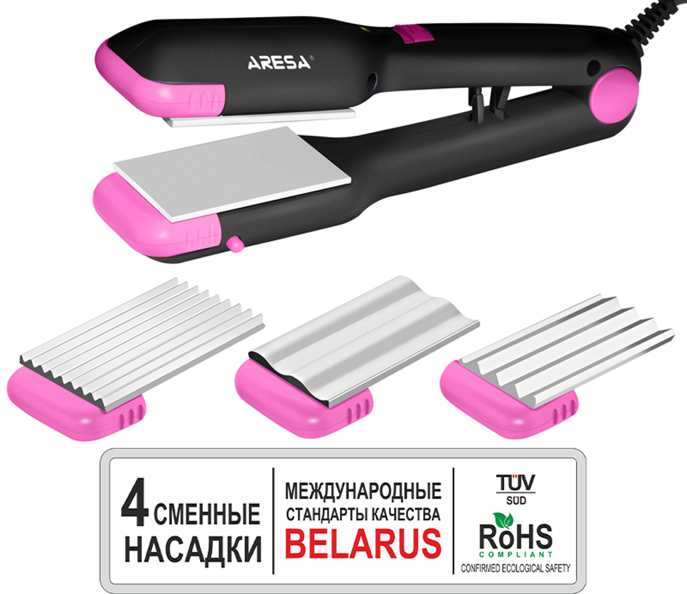 Щипцы для моделирования прически ARESA AR-3330, мультистайлер, сменные насадки, черный, розовый. Уцененный товар