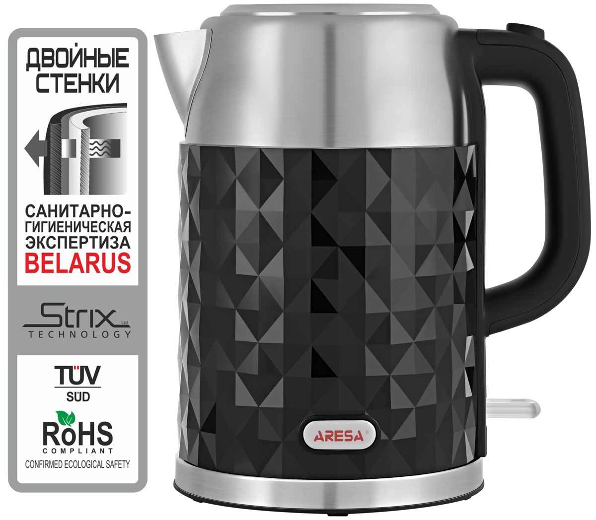 Электрический чайник ARESA AR-3449, 1,7 л., стальной корпус, черный
