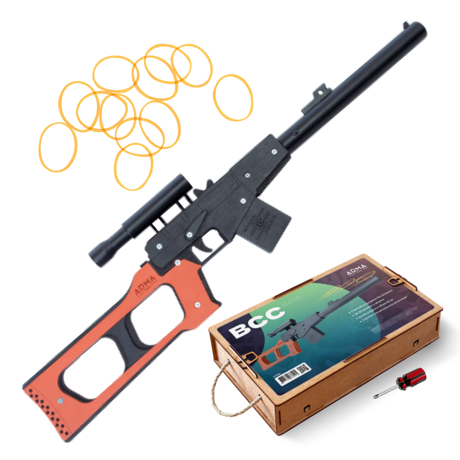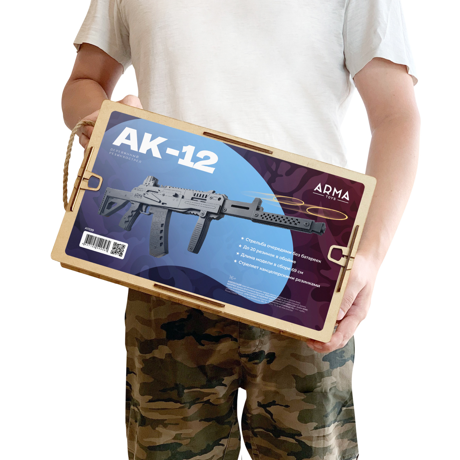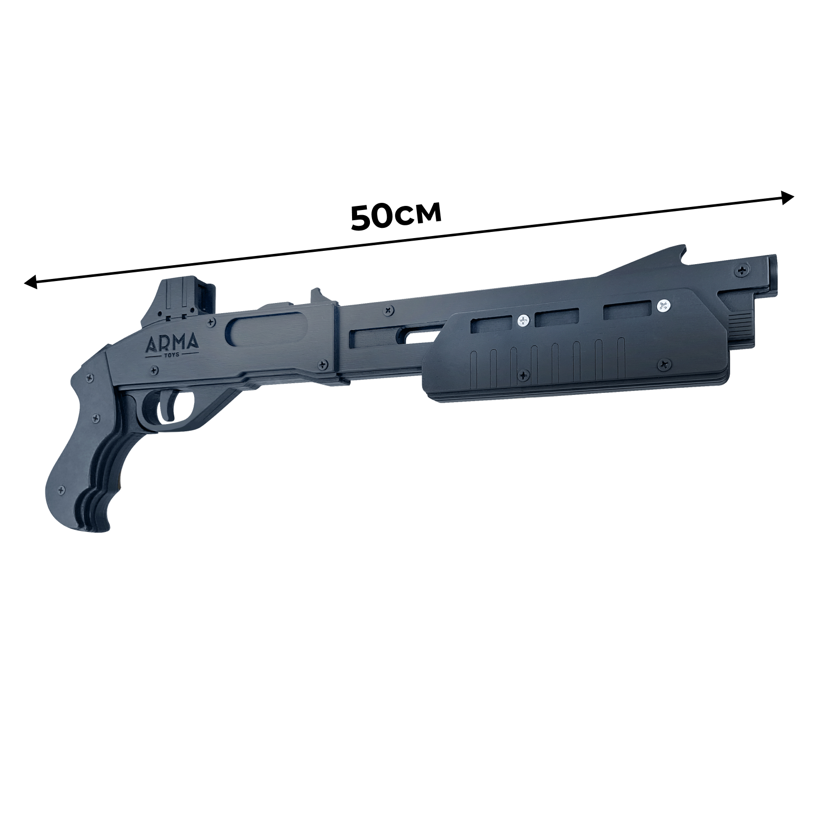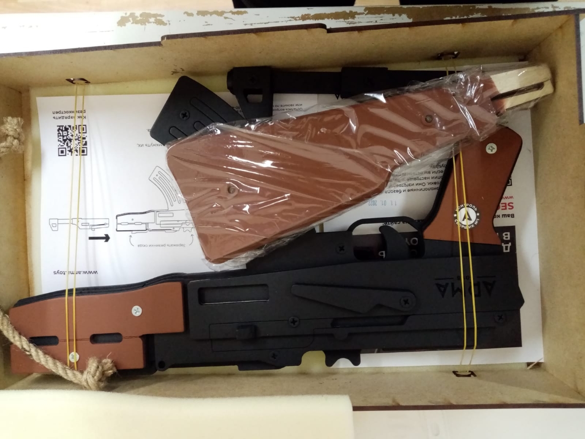 Резинкострел АК-12 с передней рукоятью и макетом коллиматорного прицела