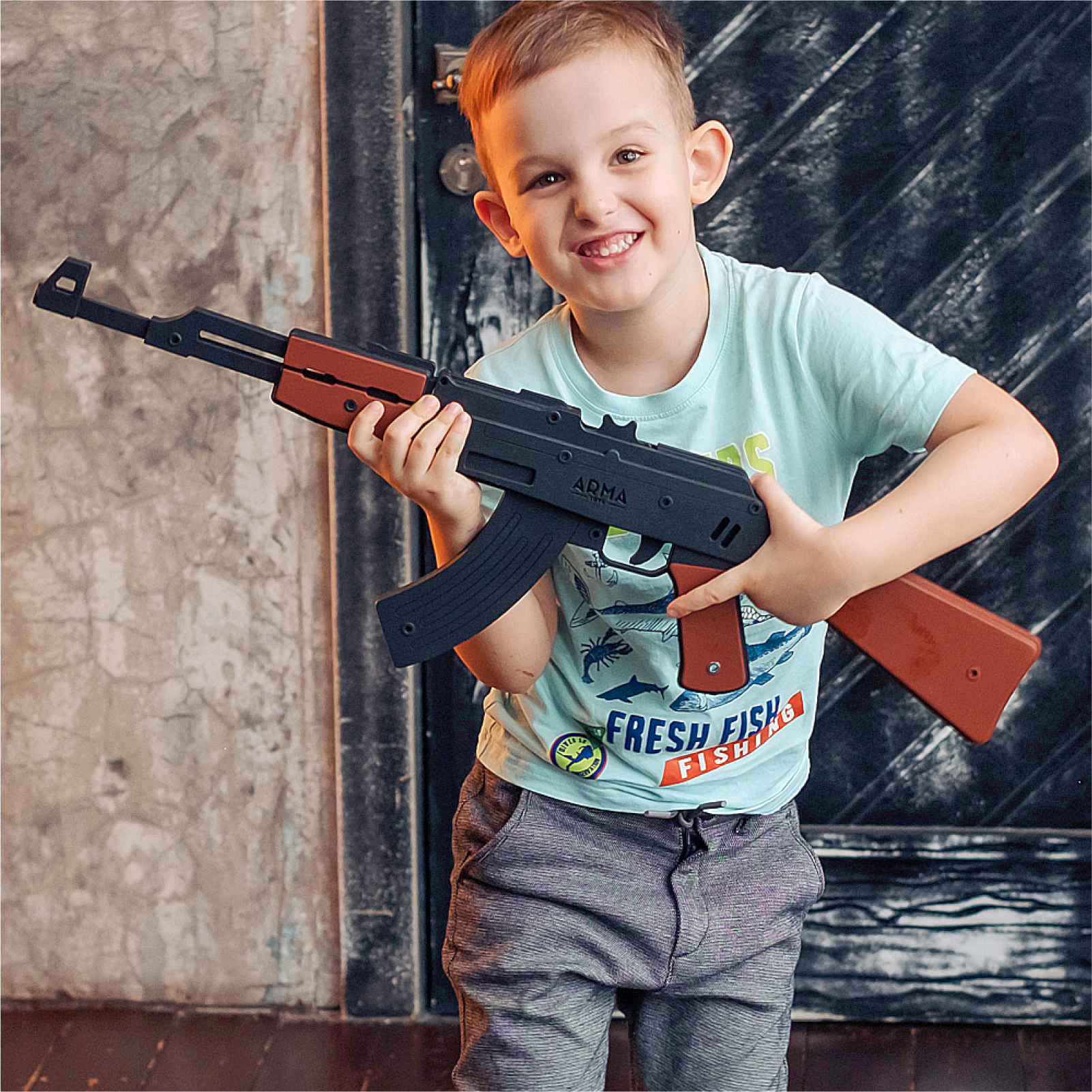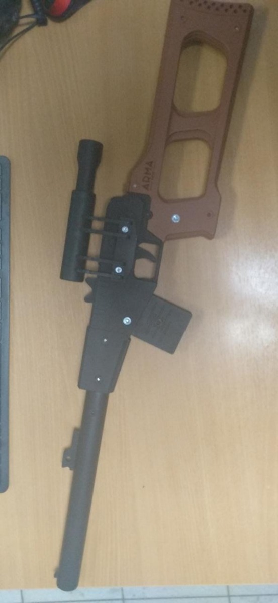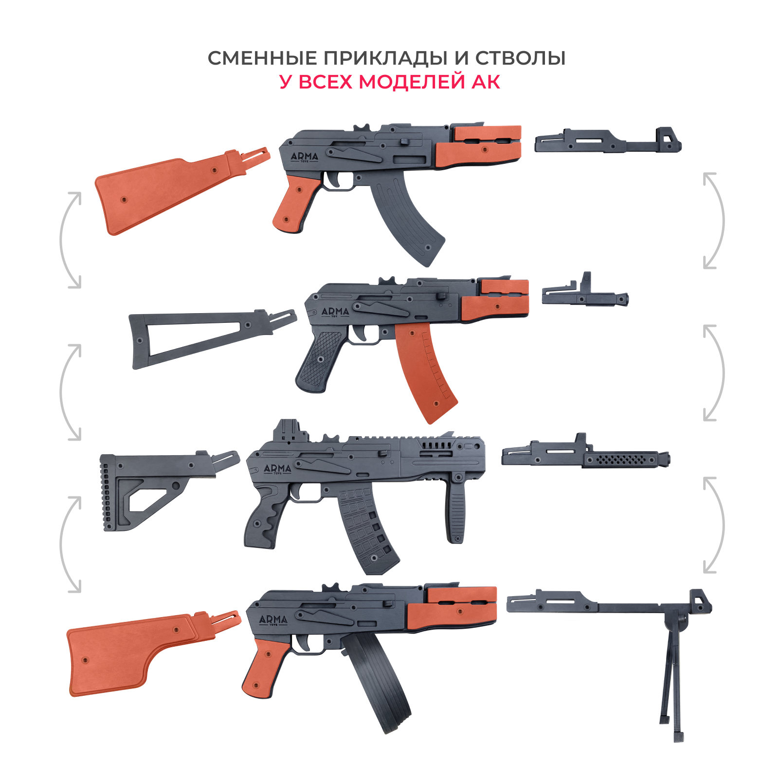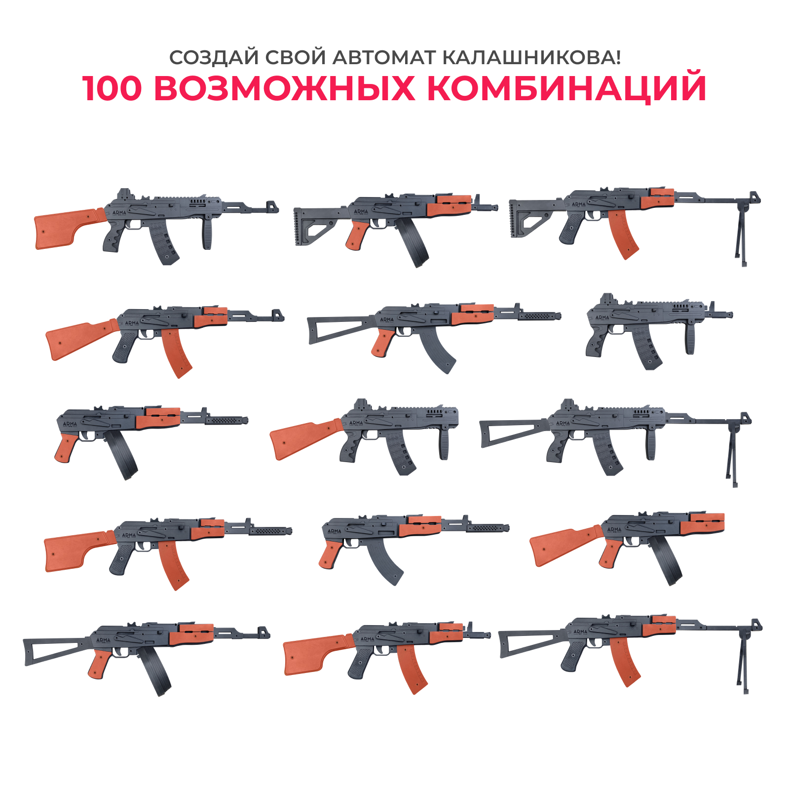 Резинкострел АК-12 с передней рукоятью и макетом коллиматорного прицела