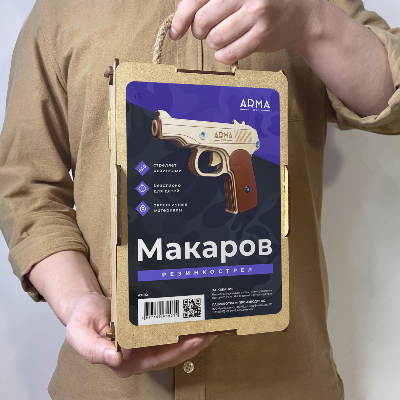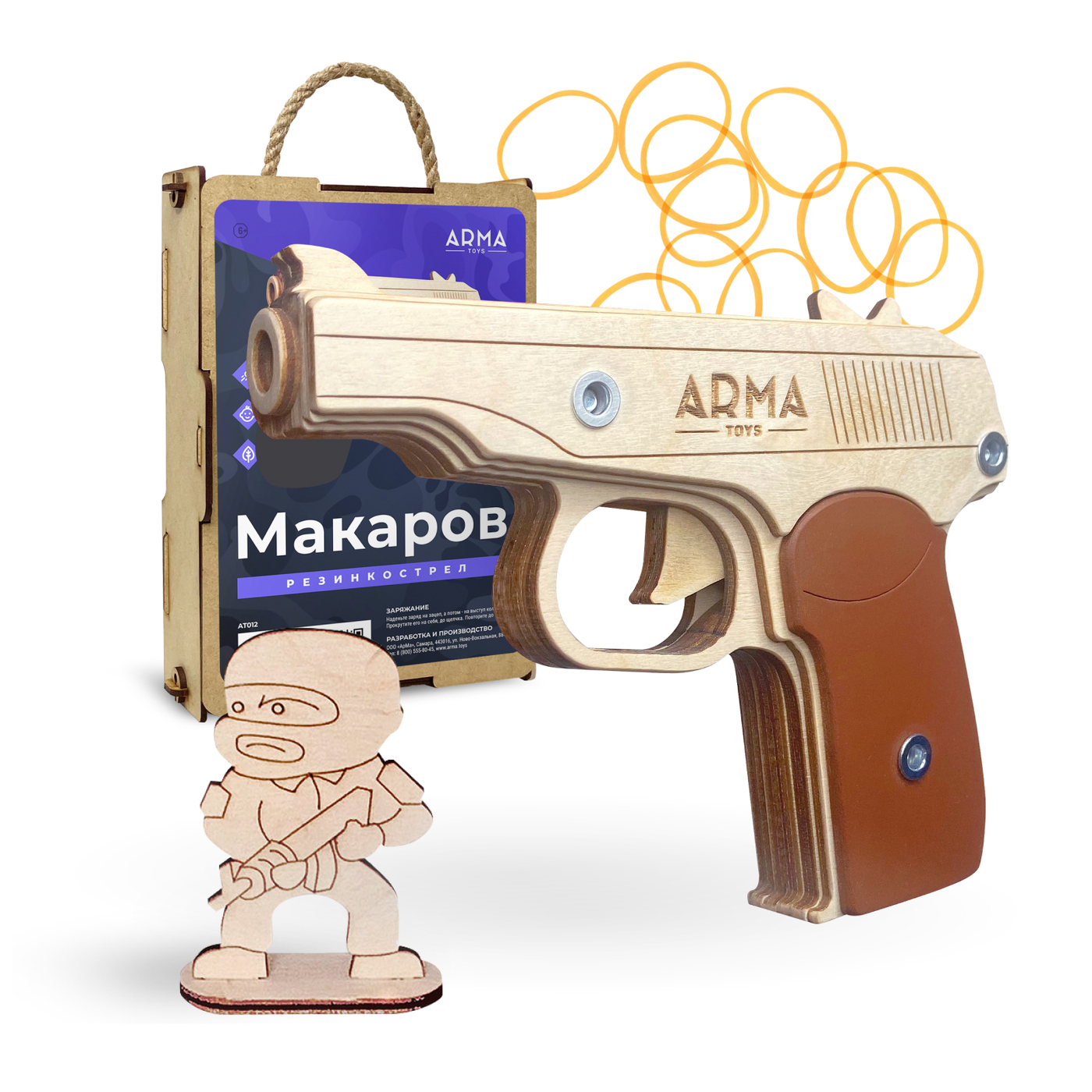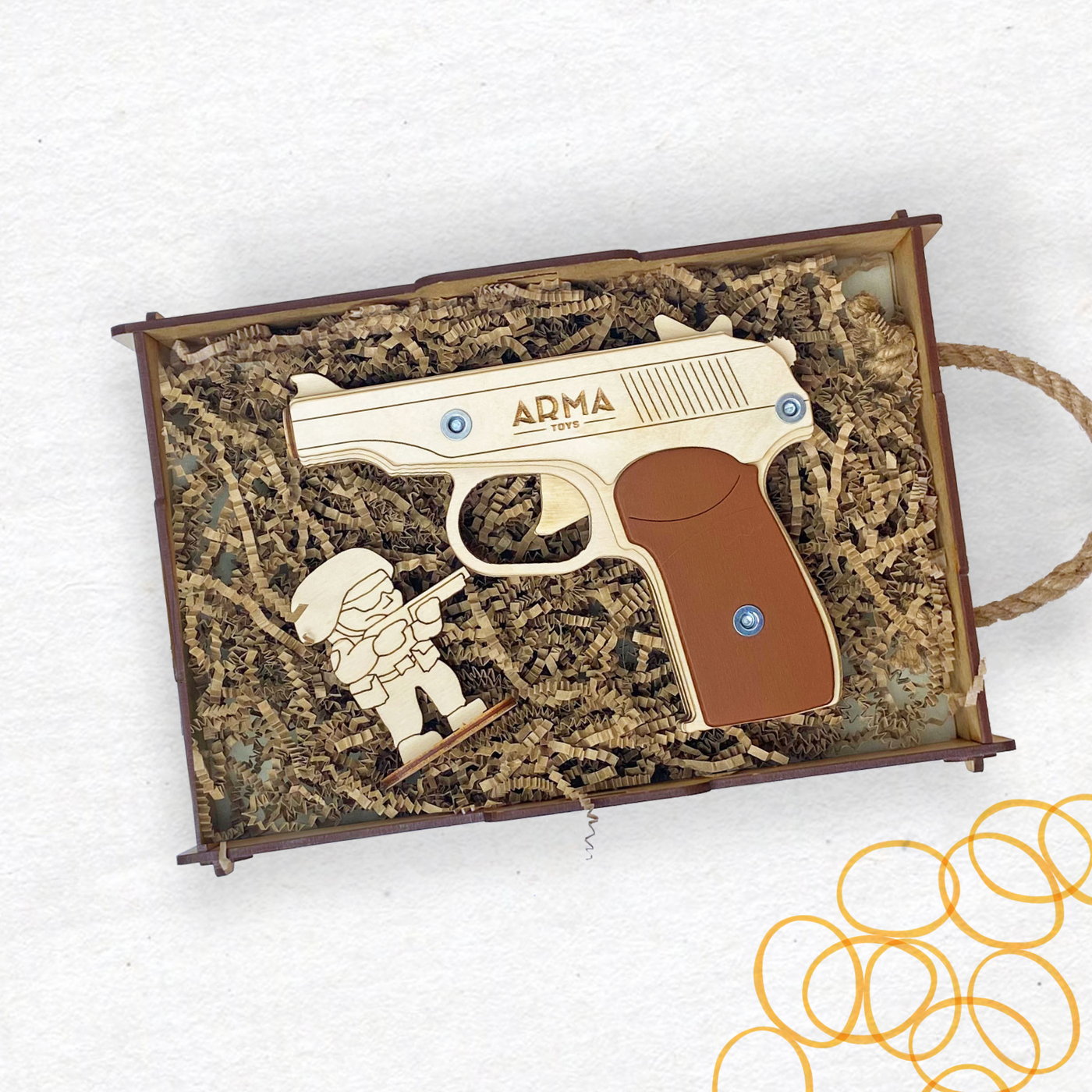 Игрушечный пистолет ARMA TOYS "Макарова" (ПМ), деревянный резинкострел, собранный