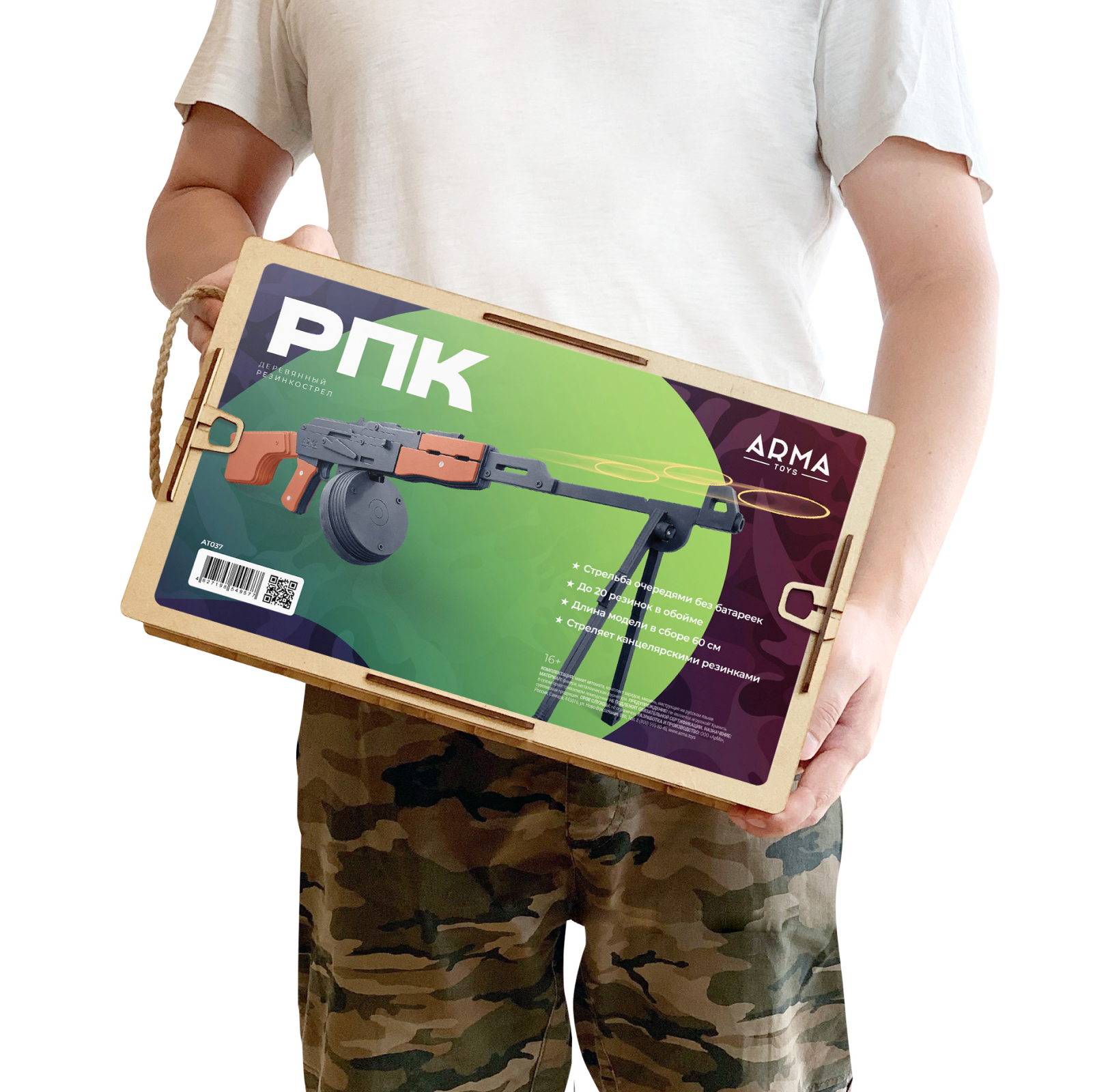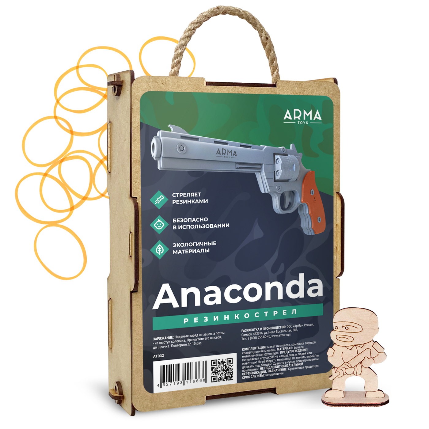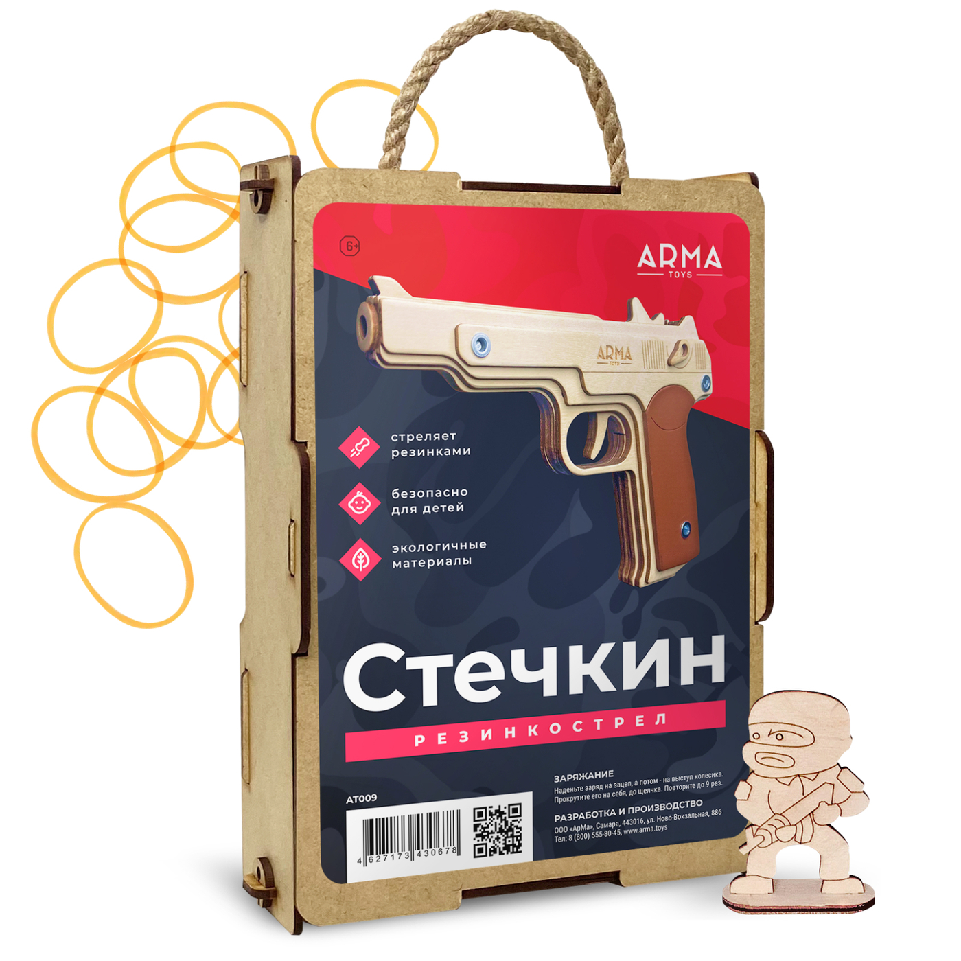 Игрушечный пистолет ARMA TOYS "Макарова" (ПМ), деревянный резинкострел, собранный