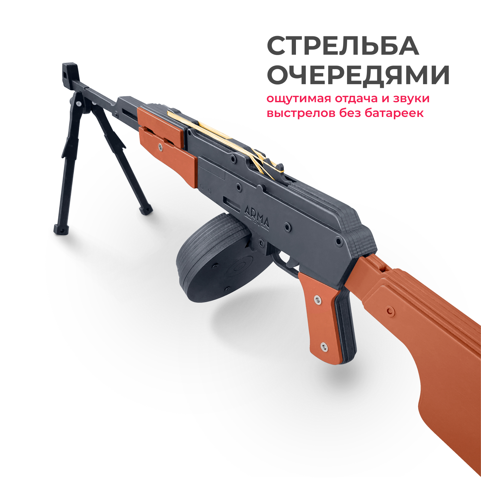 Резинкострел РПК с дисковым магазином, сошками и съемным прикладом