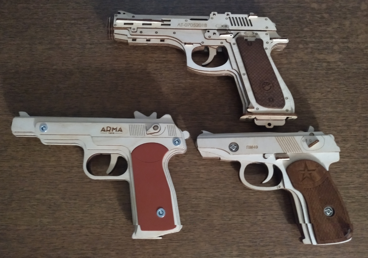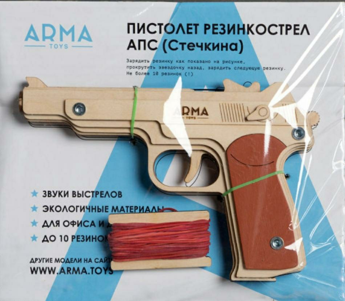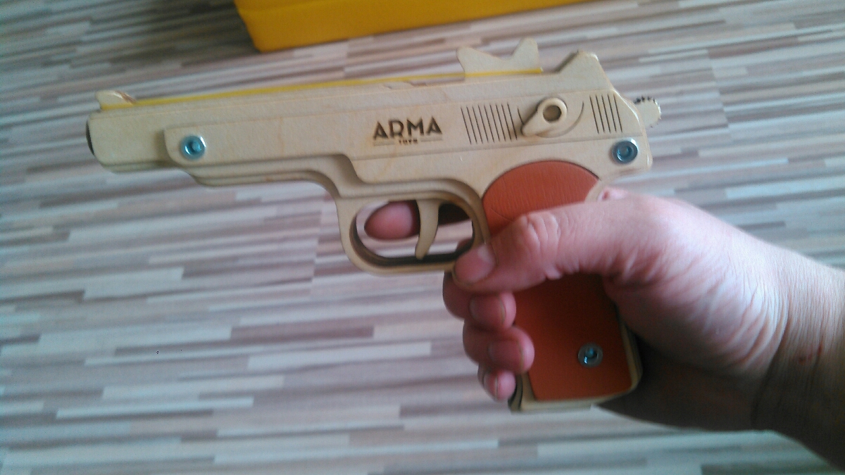 Деревянный резинкострел ARMA TOYS "Пистолет Стечкина" собранный