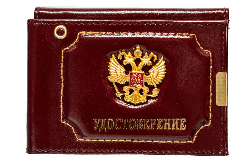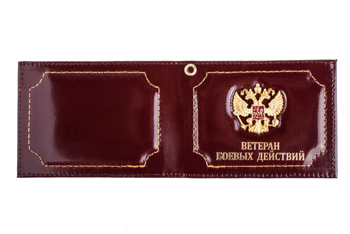 Обложка на удостоверение с эмблемой Ветеран боевых действий герб РФ, нат. кожа