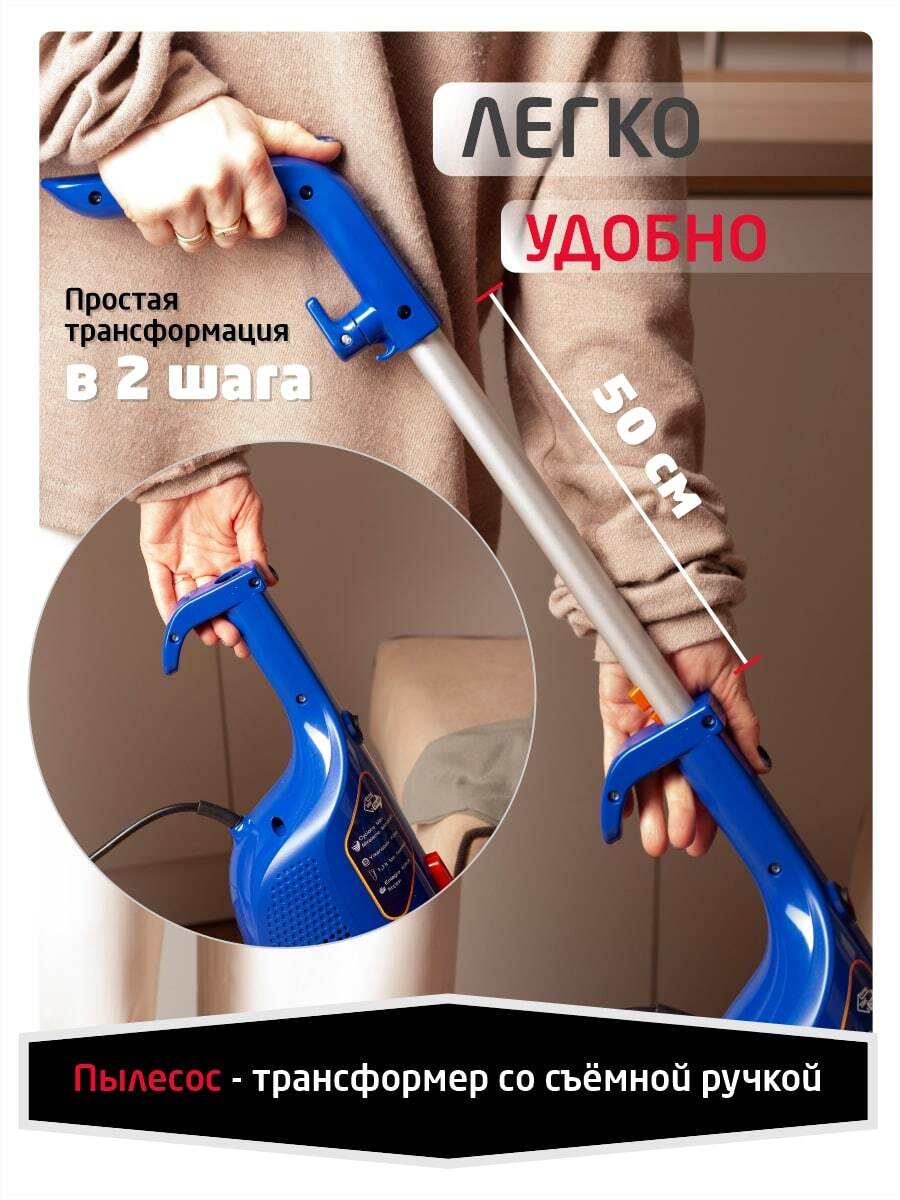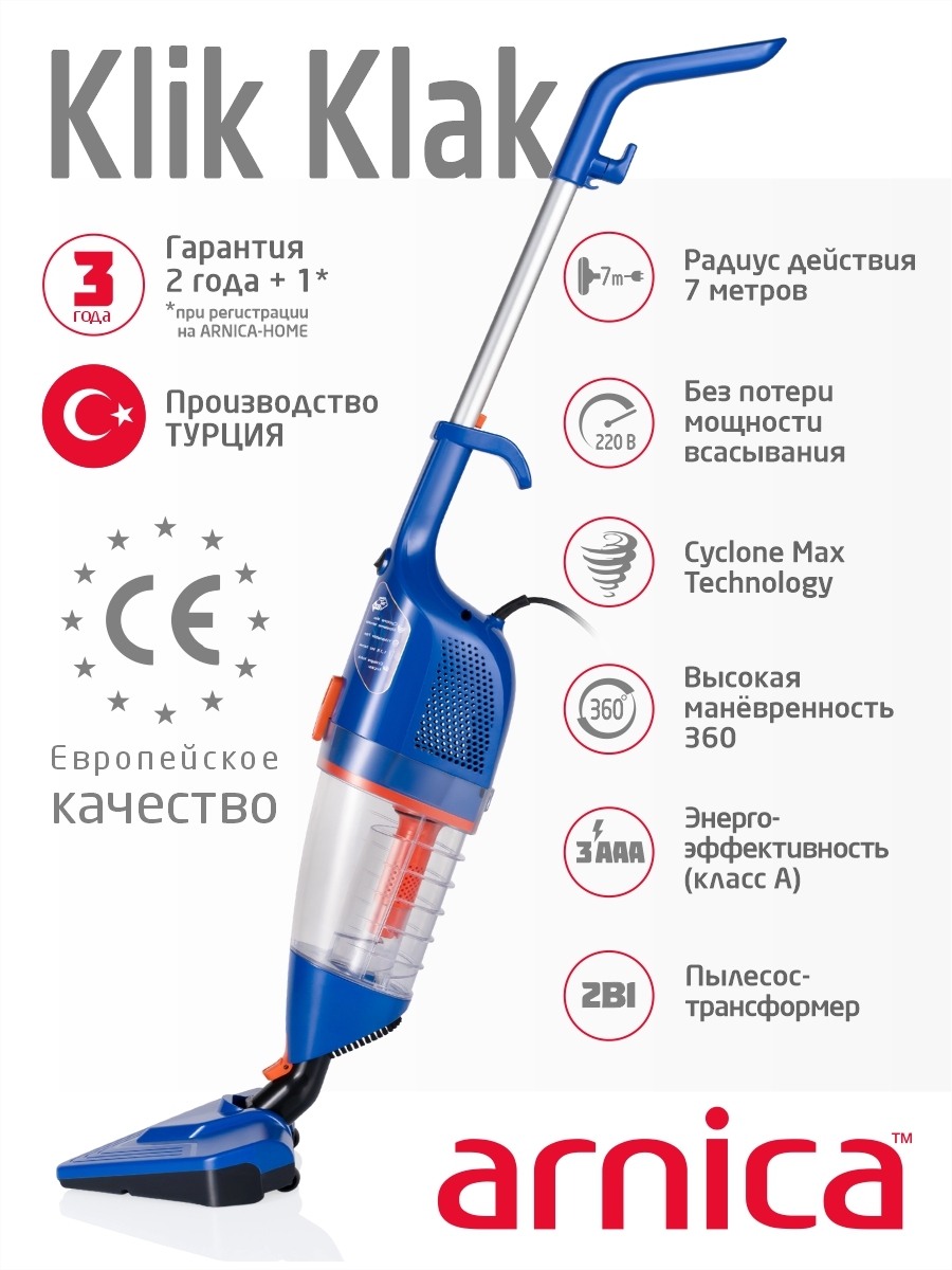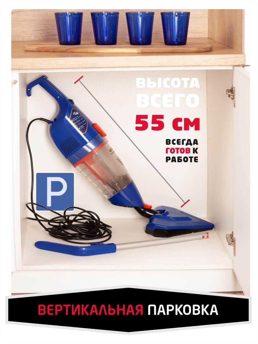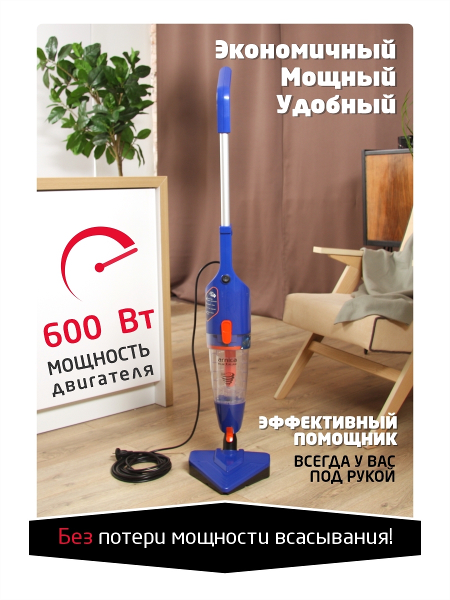 Вертикальный пылесос Arnica Klik Klak, бытовой, ручной, 600 Вт, синий