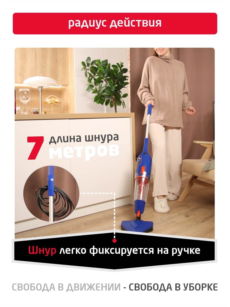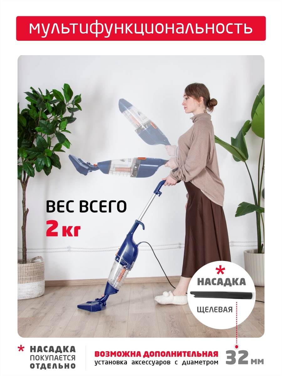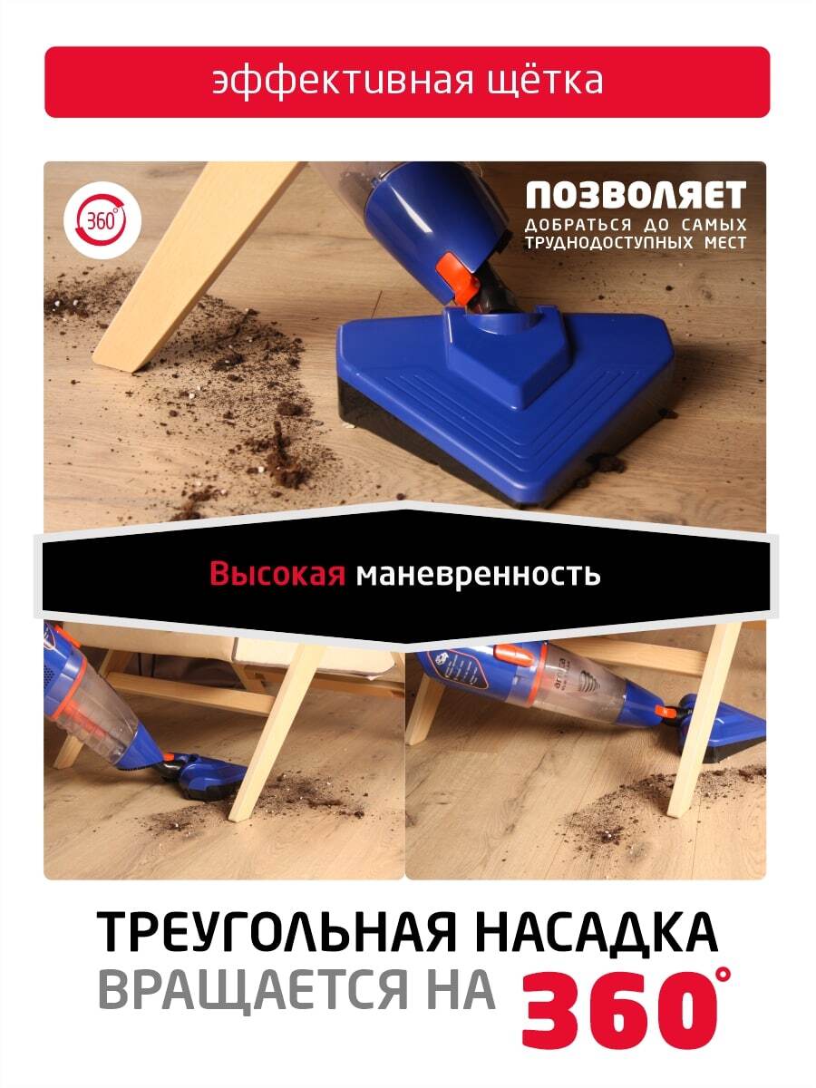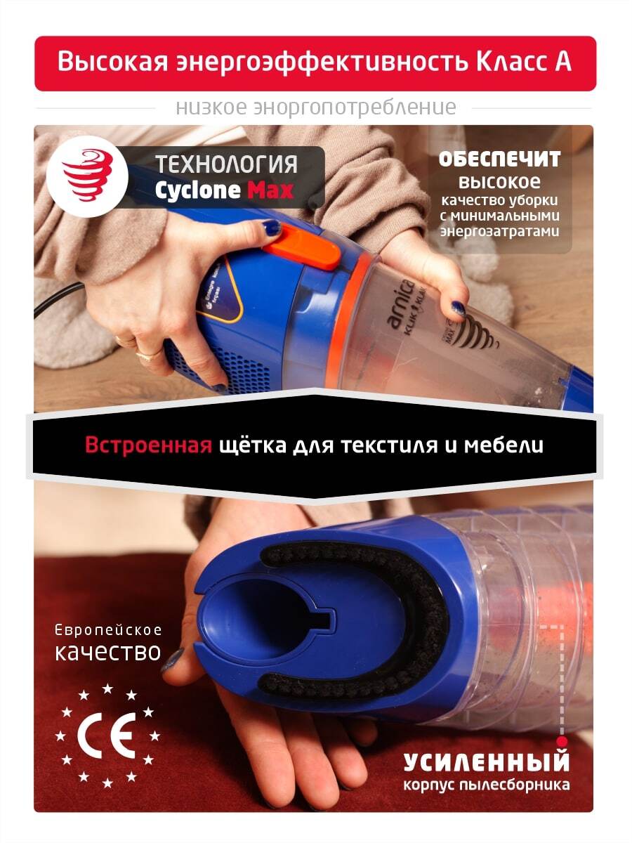 Вертикальный пылесос Arnica Klik Klak, бытовой, ручной, 600 Вт, синий
