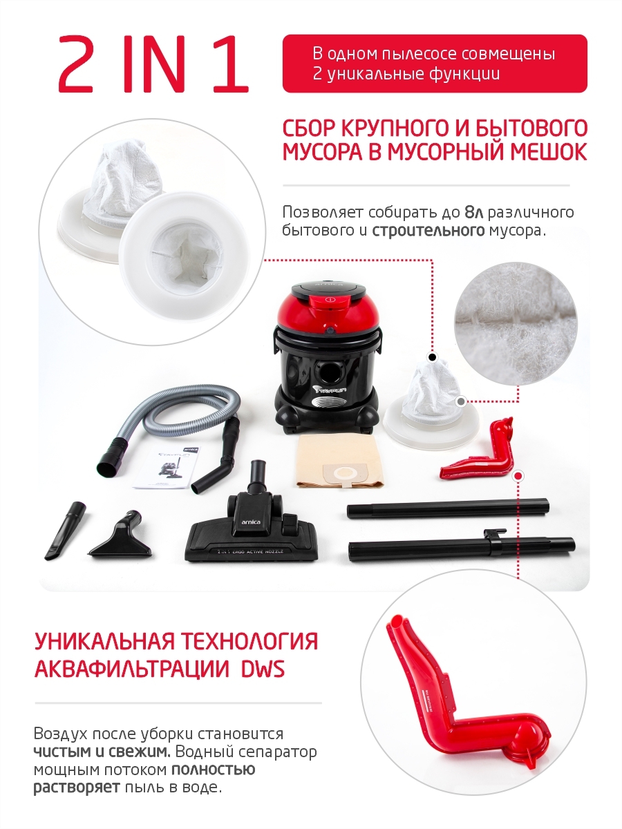Моющий пылесос ARNICA Hydra Rain Plus, красный