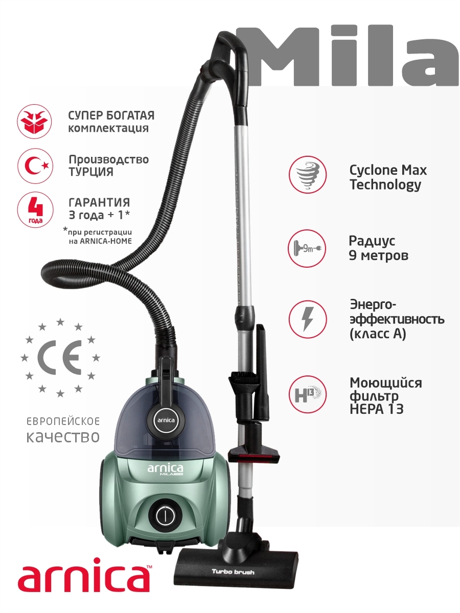 Бытовой пылесос ARNICA Mila Trend, оливковый