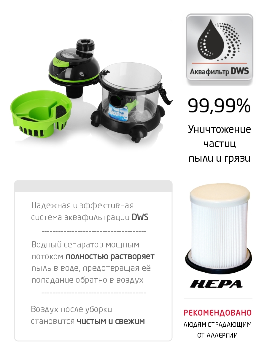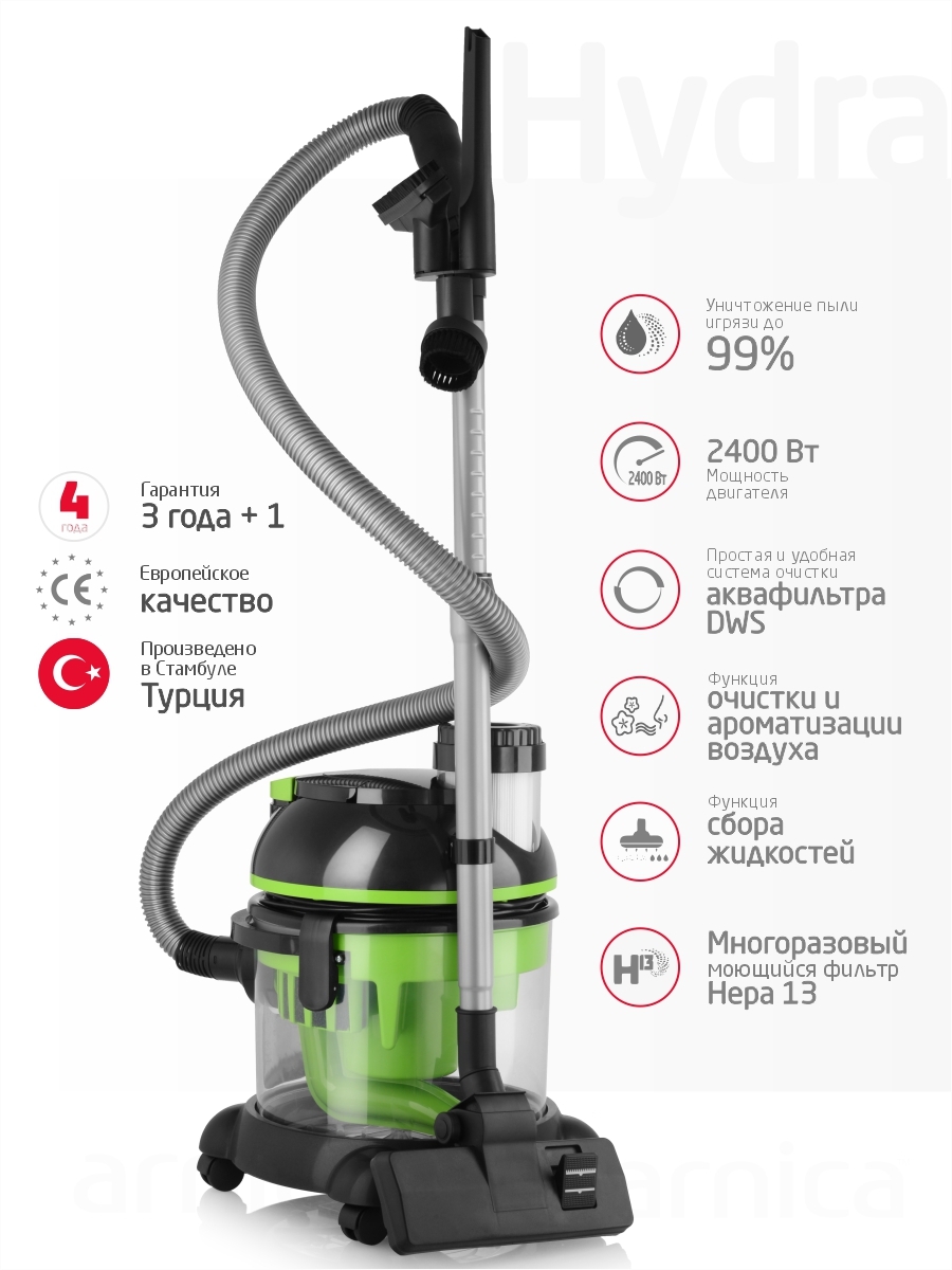 Бытовой пылесос ARNICA Hydra, зеленый