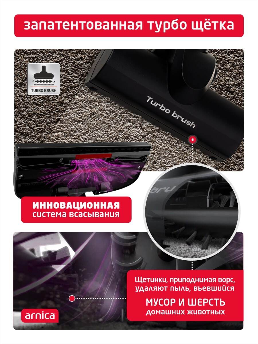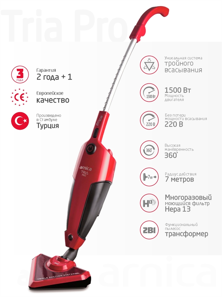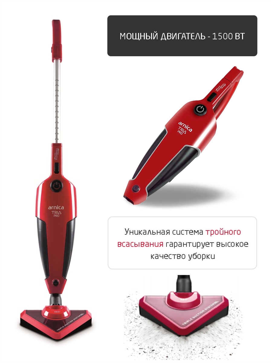 Вертикальный пылесос ARNICA Tria Pro, красный