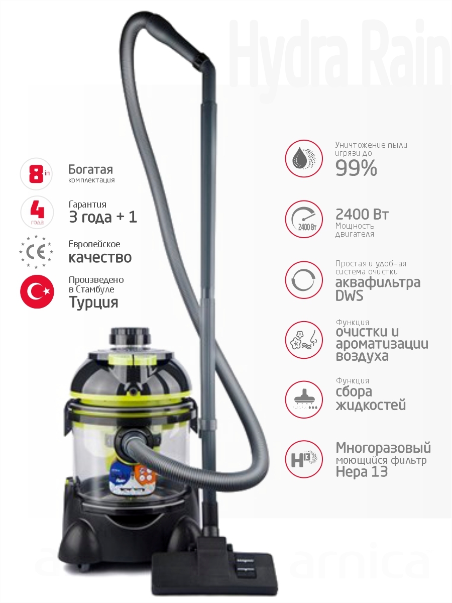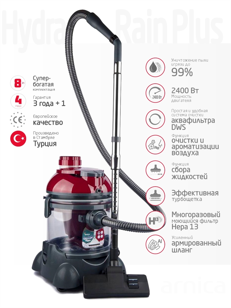 Моющий пылесос ARNICA Hydra Rain Plus, красный