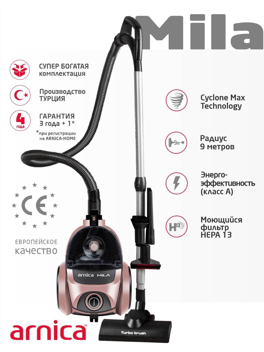 Бытовой пылесос ARNICA Mila Rose, розовый
