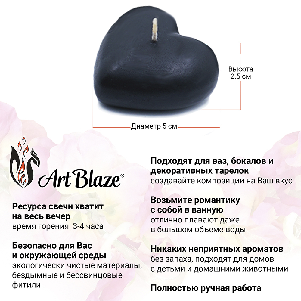 Плавающие свечи Art Blaze сердце, набор 9 штук, цвет чёрный
