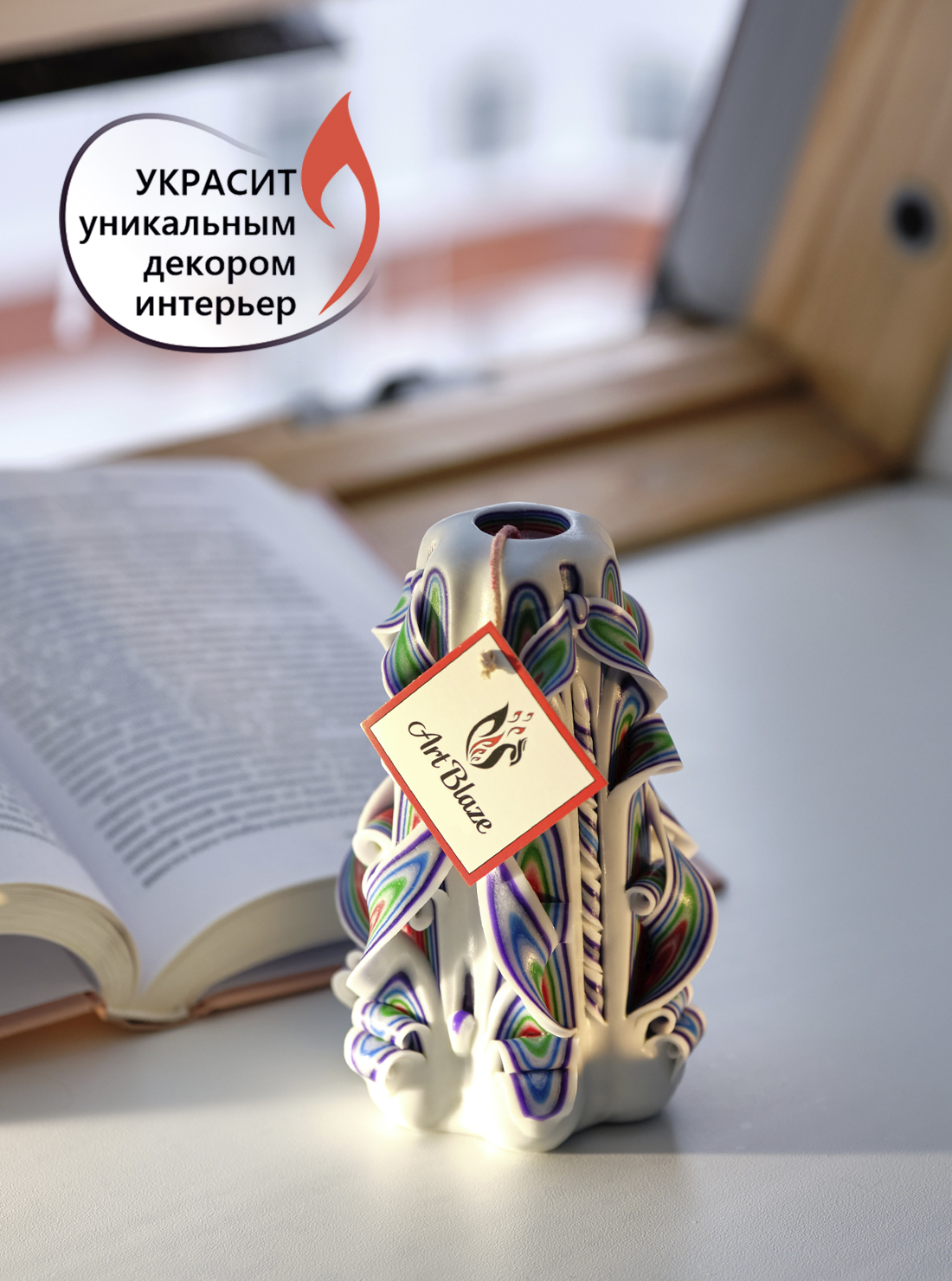 Декоративная резная свеча Art Blaze "Happy Birthday!" - Авторская подарочная коллекция ручной работы