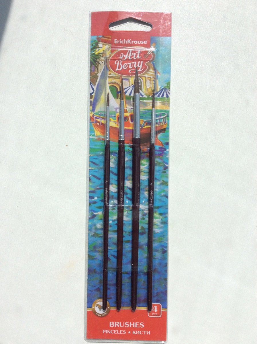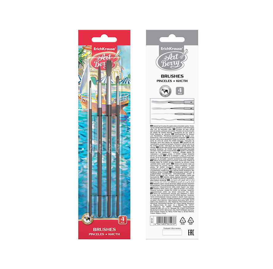 Кисти для акварели и гуаши ArtBerry, пони, 4 шт