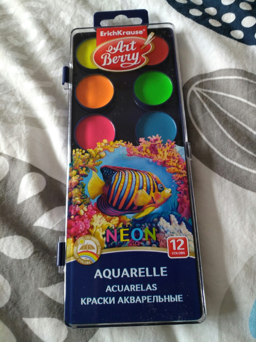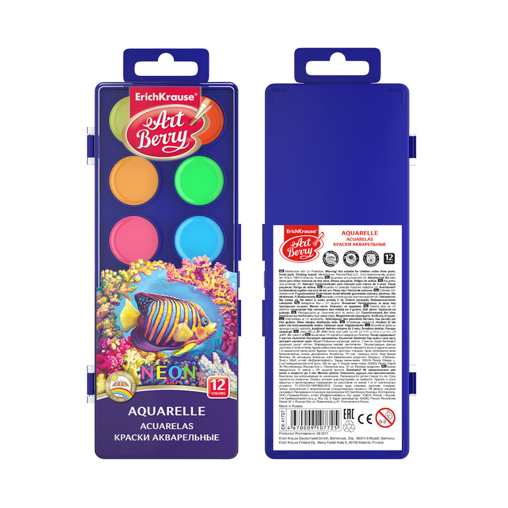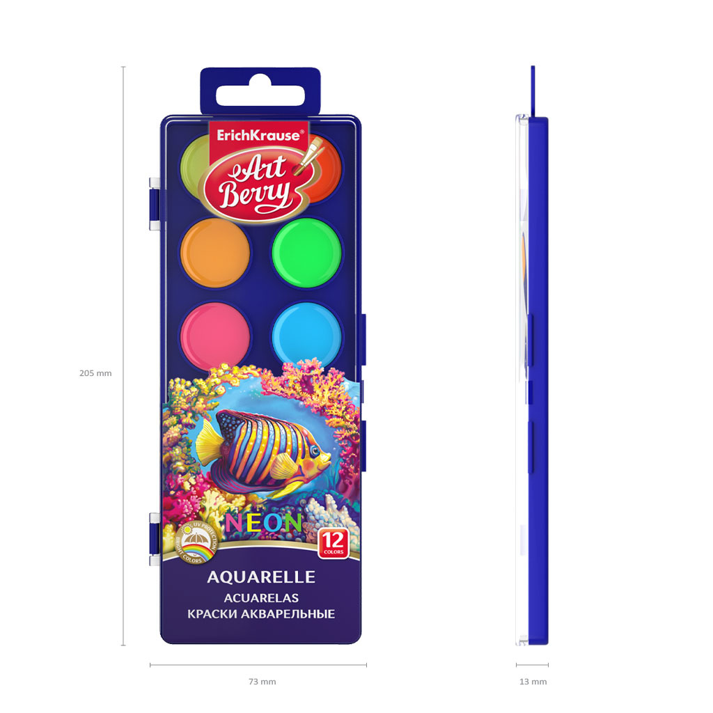 Краски акварельные ArtBerry Neon, с уф-защитой яркости, 12 цветов