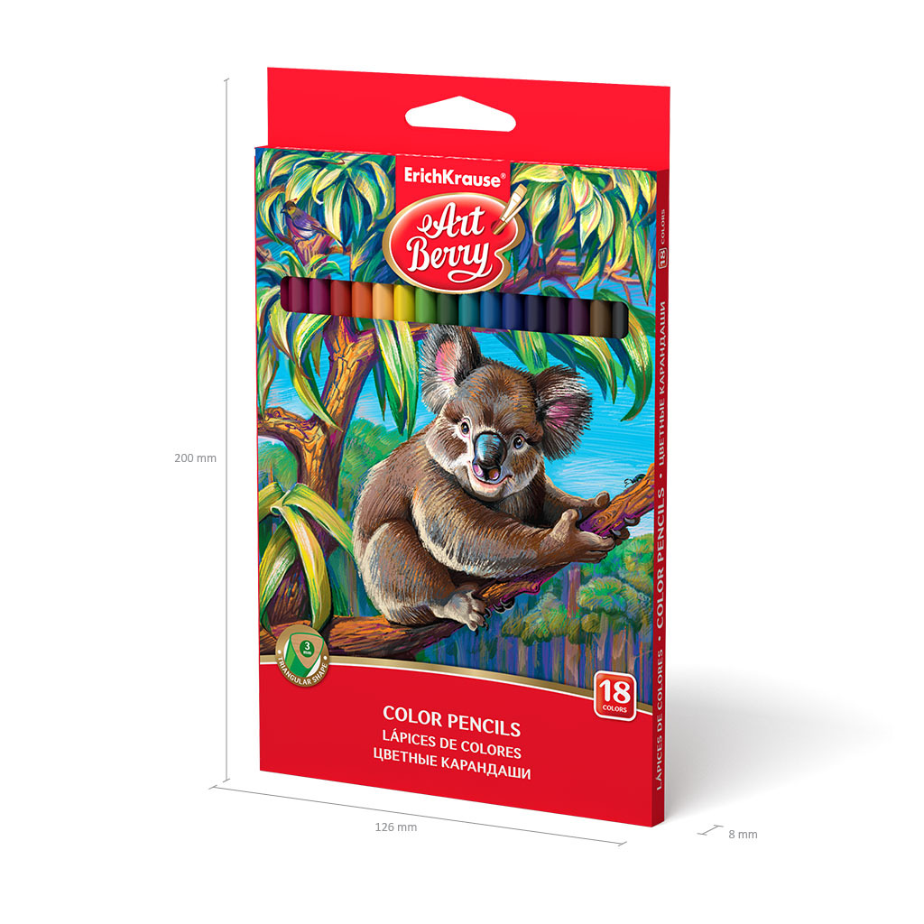 Цветные карандаши трехгранные ArtBerry, 18 цветов