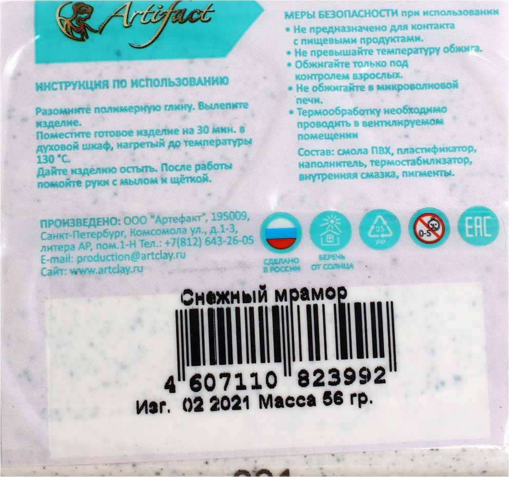 Пластилин отверждаемый Артефакт, 619065_801 снежный мрамор, 56 г