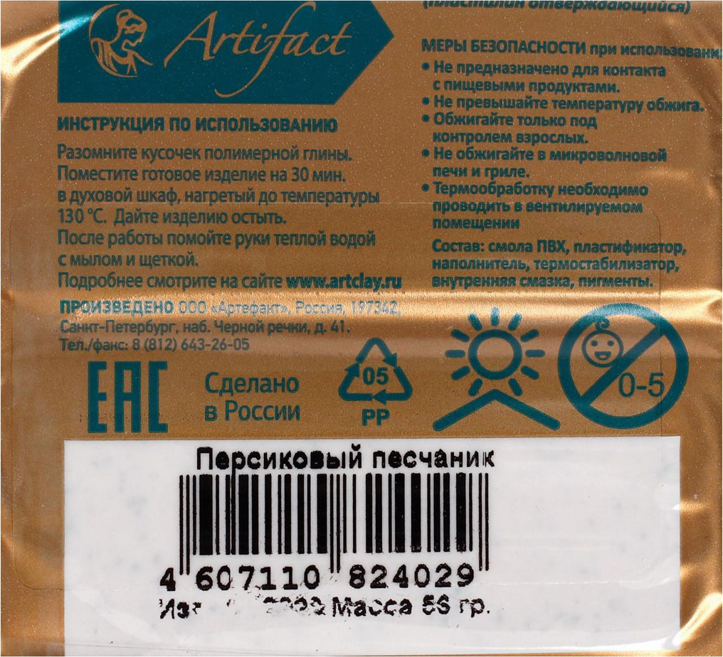 Пластилин отверждаемый Артефакт, 619065_8114 персиковый песчаник, 56 г