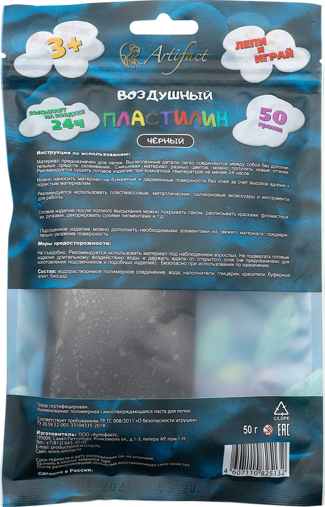 Воздушный пластилин Артефакт черный, 50 г