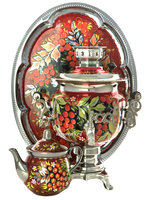 Набор самовар электрический 3 литра с росписью "Птица в рябине", арт. 130587