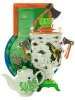 Электрический самовар 3 литра с художественной росписью "Золотые цветы на черном фоне", арт. 140408