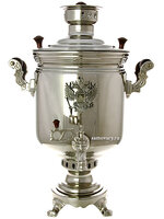 Самовар угольный на дровах 5 литров "цилиндр" никелированный Тула с накладным Гербом РФ, арт. 220511