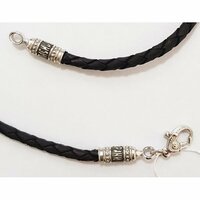Шнурок для крестика кожаный серебряный замок с молитвой Спаси и Сохрани, арт АШ-16