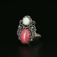 Кубачинское серебряное кольцо с филигранью ручной работы (камень - родонит, перламутр) арт.11292 18