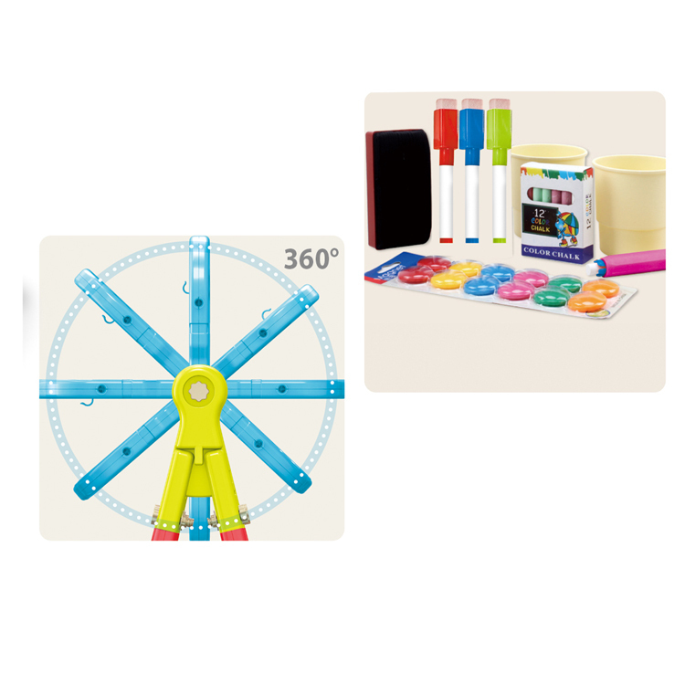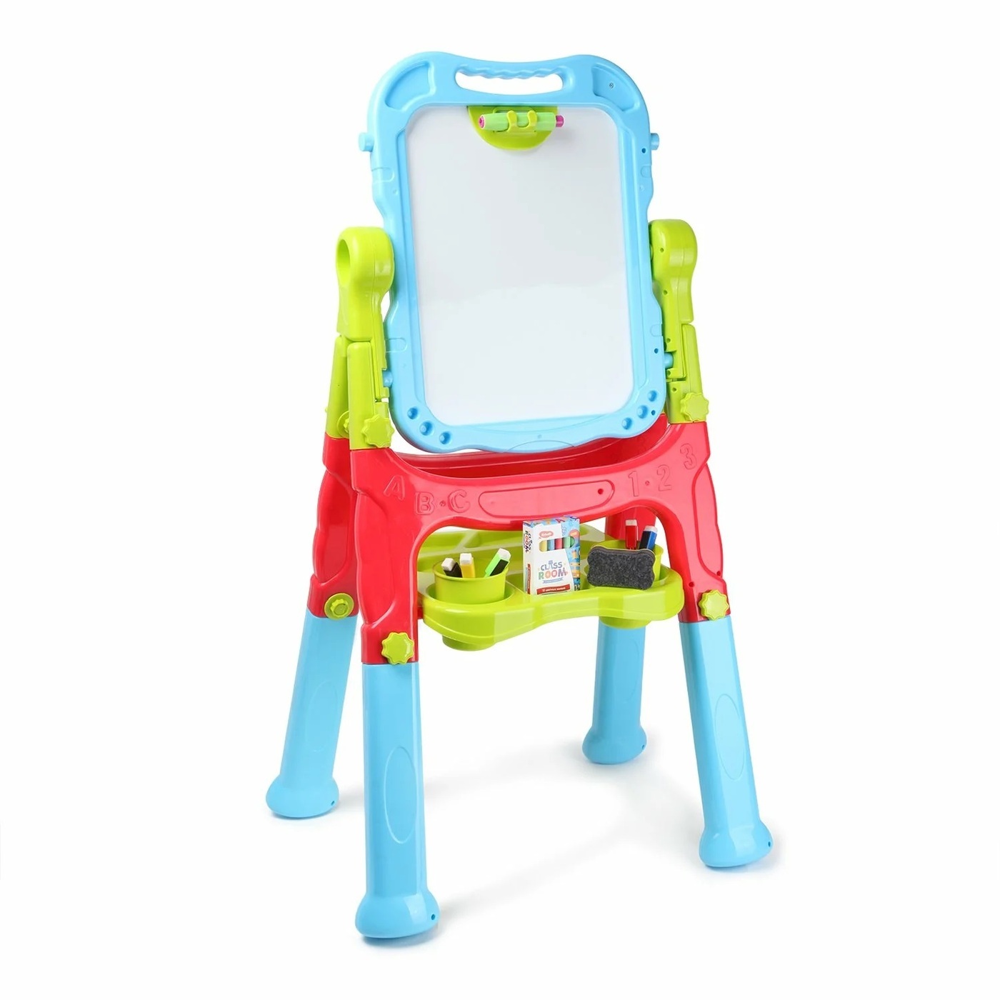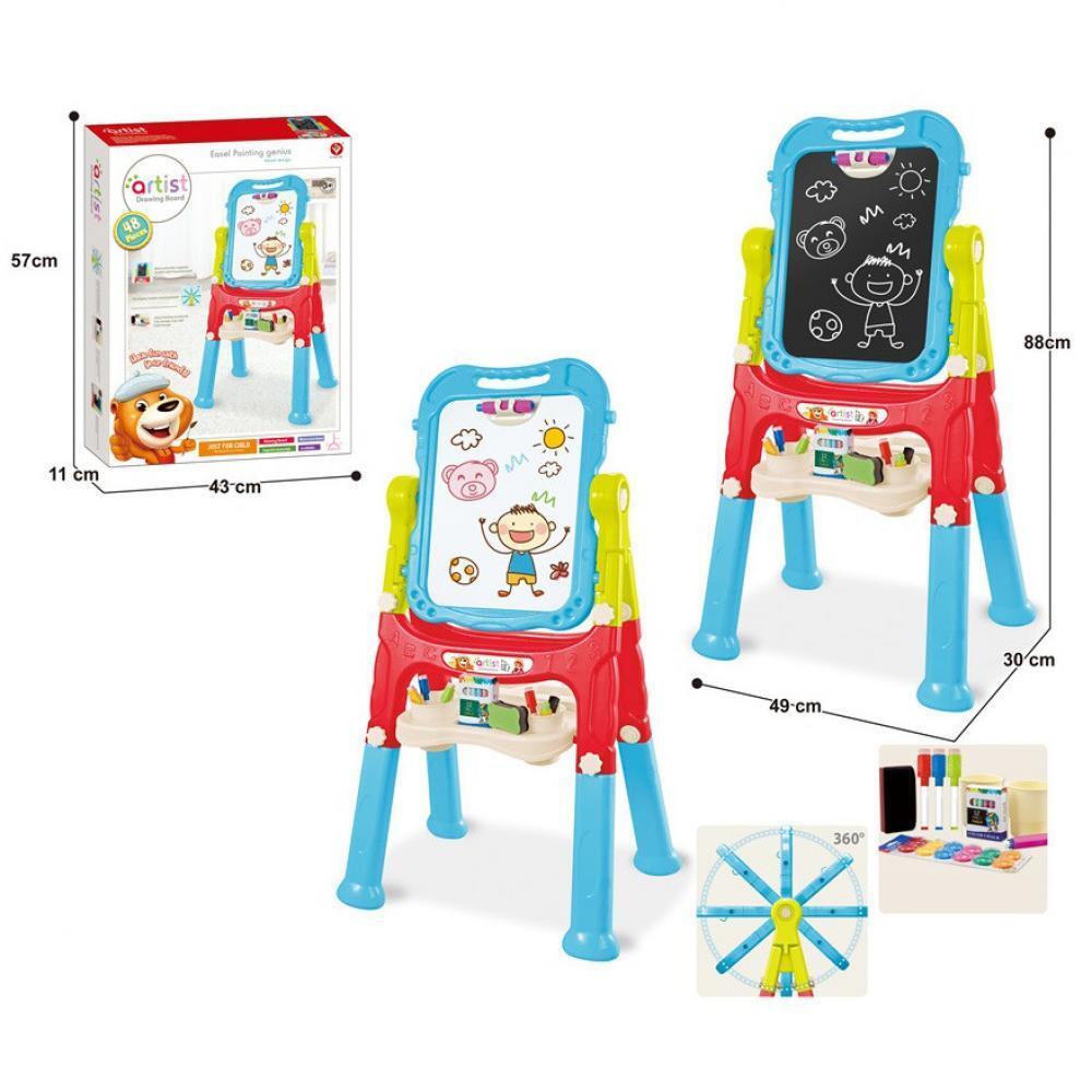 Детский мольберт-доска 2-х сторонняя для рисования с аксесуарами (360 градусов, магнитная и для рисования)
