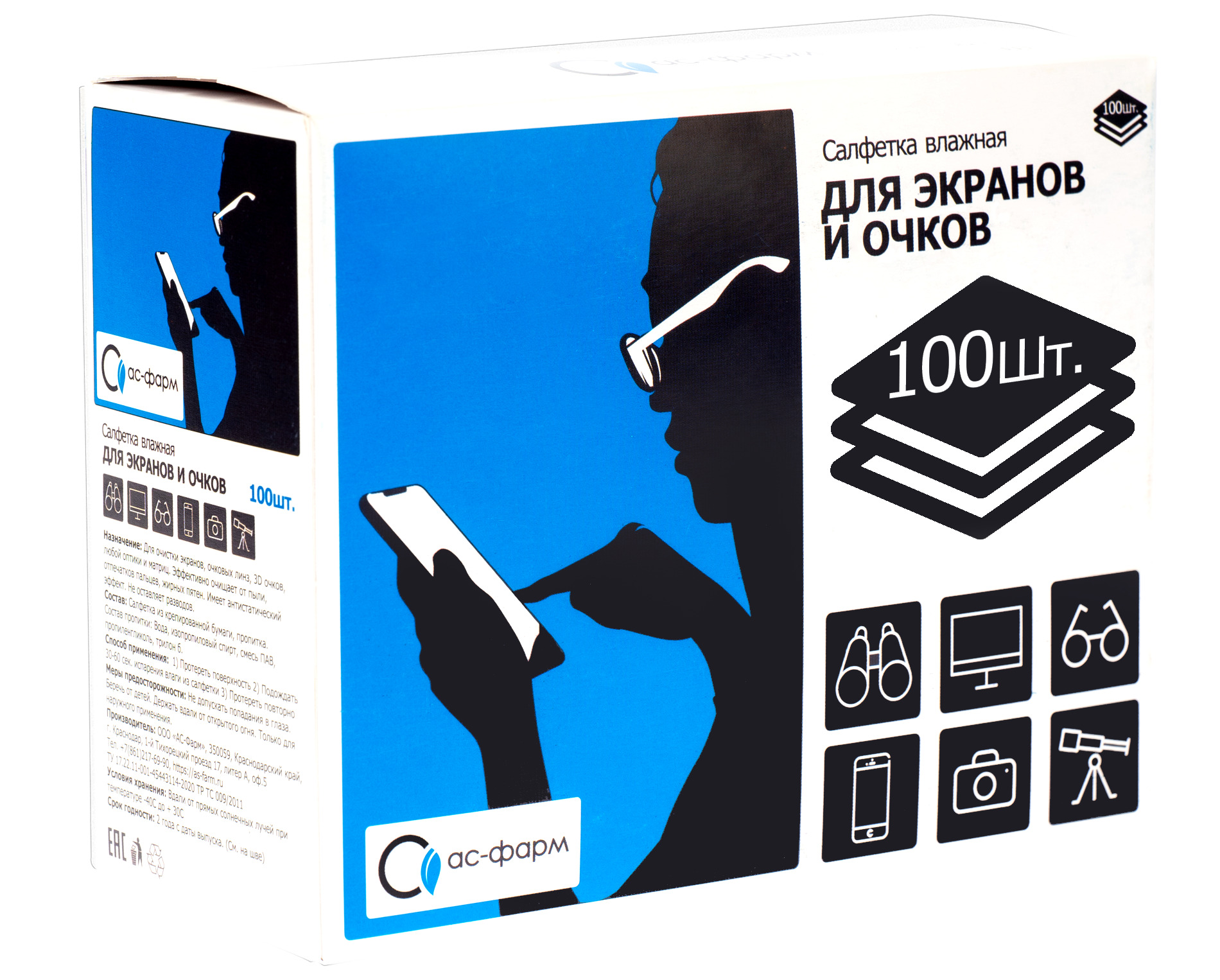 Салфетки для очков и экранов (100 штук)