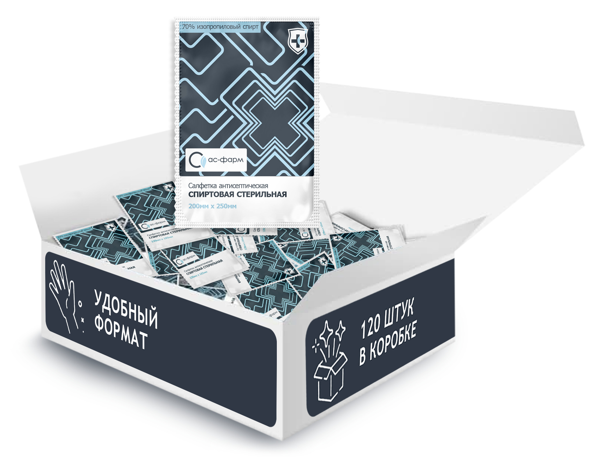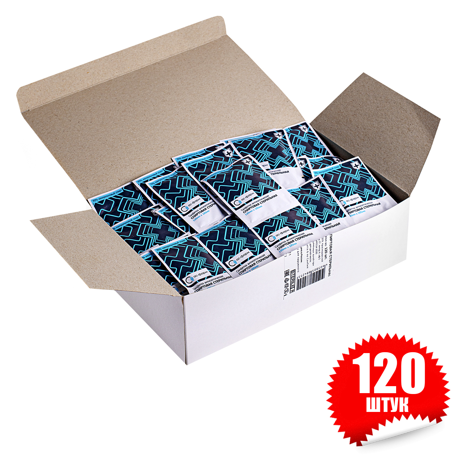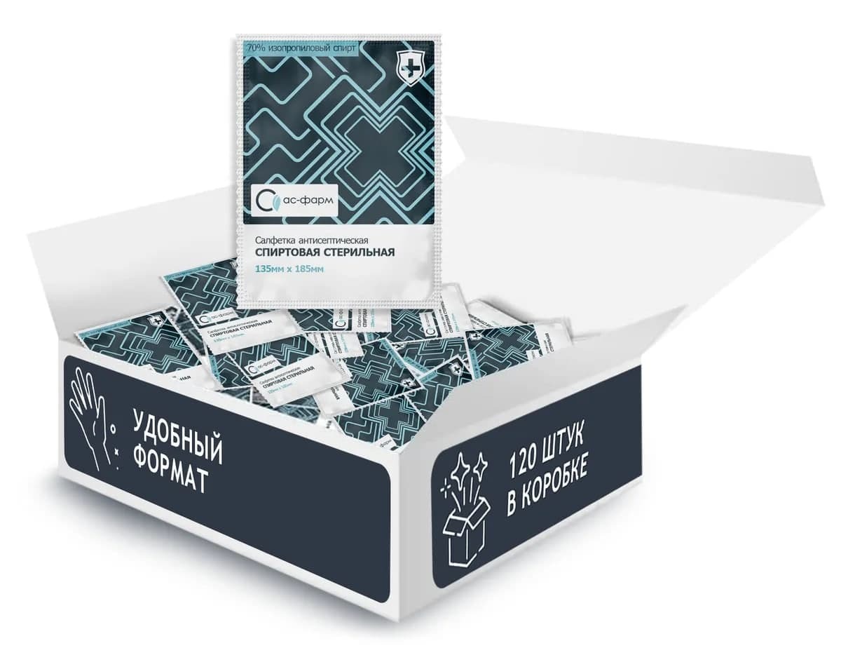 Салфетки спиртовые 135х185 (120 штук в коробке)