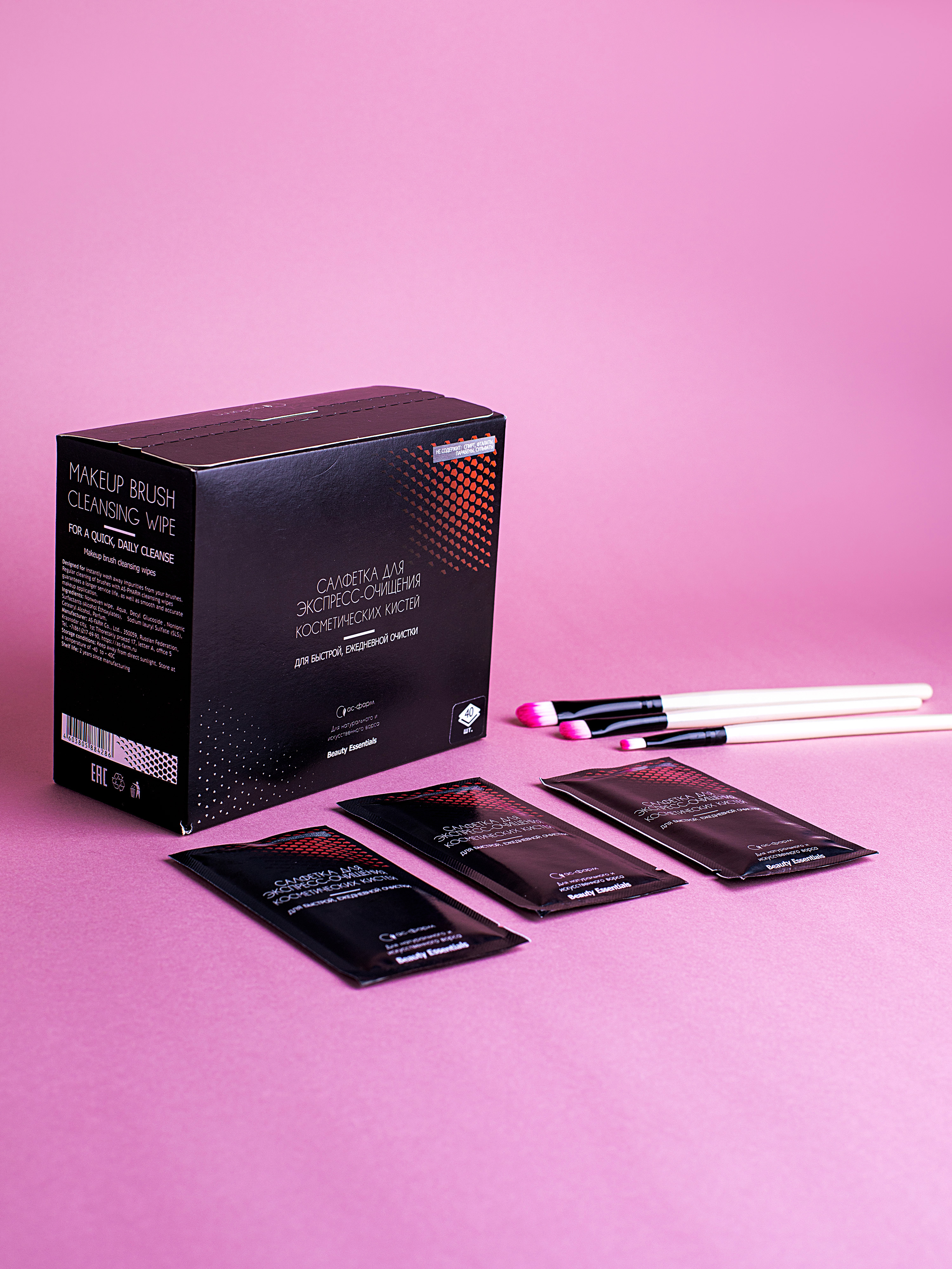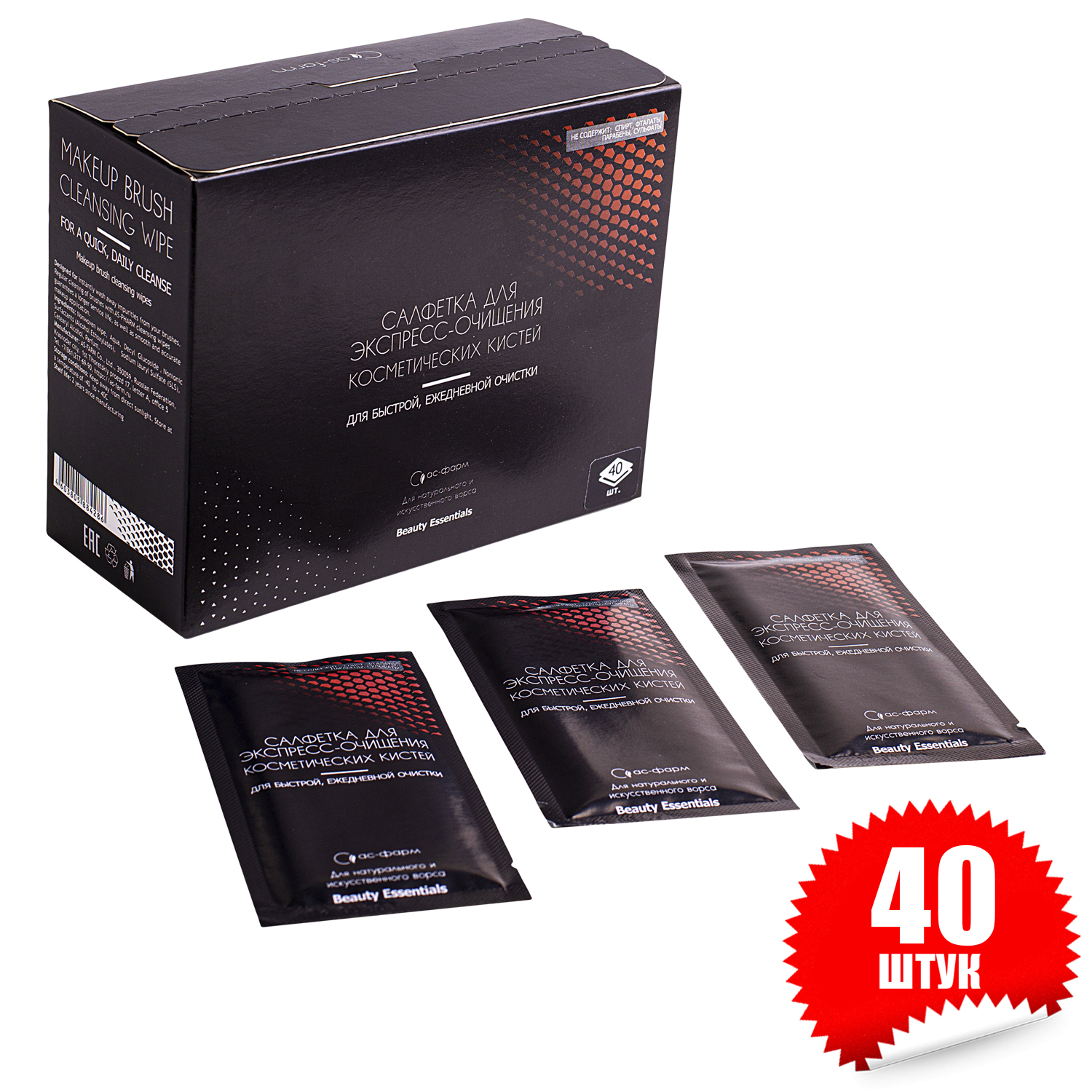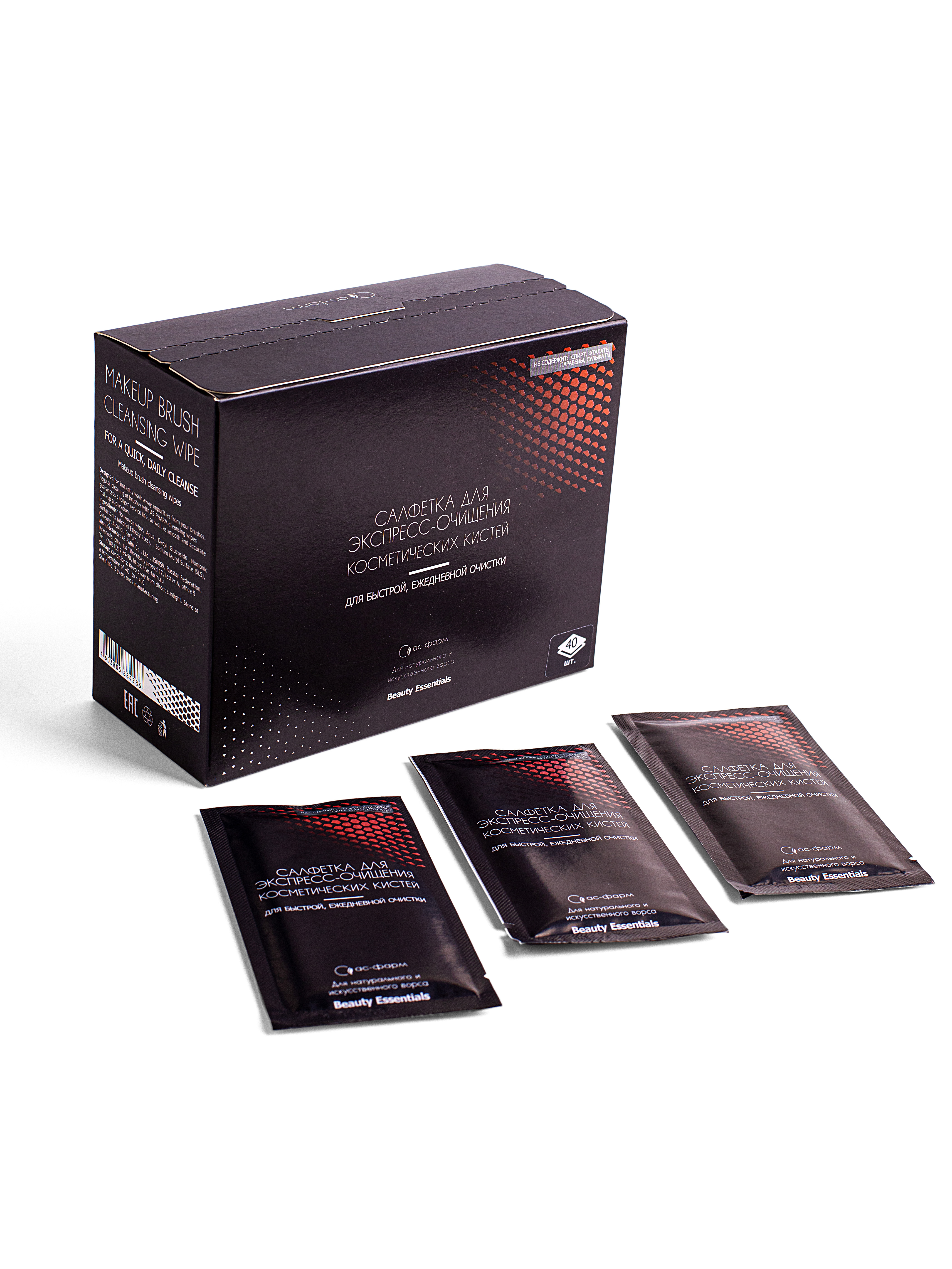 Салфетки для экспресс очистки макияжных кистей (40 штук в коробке)