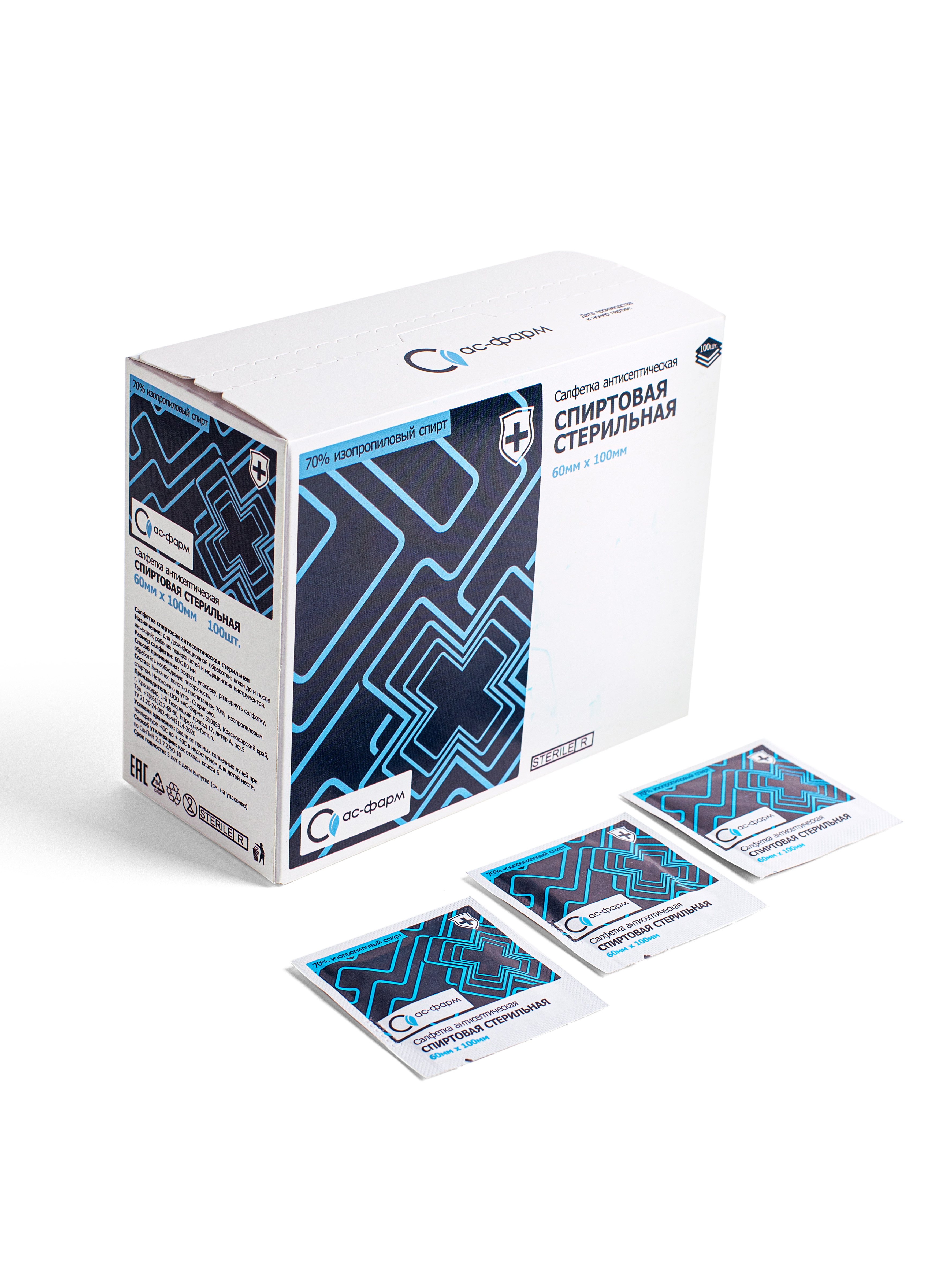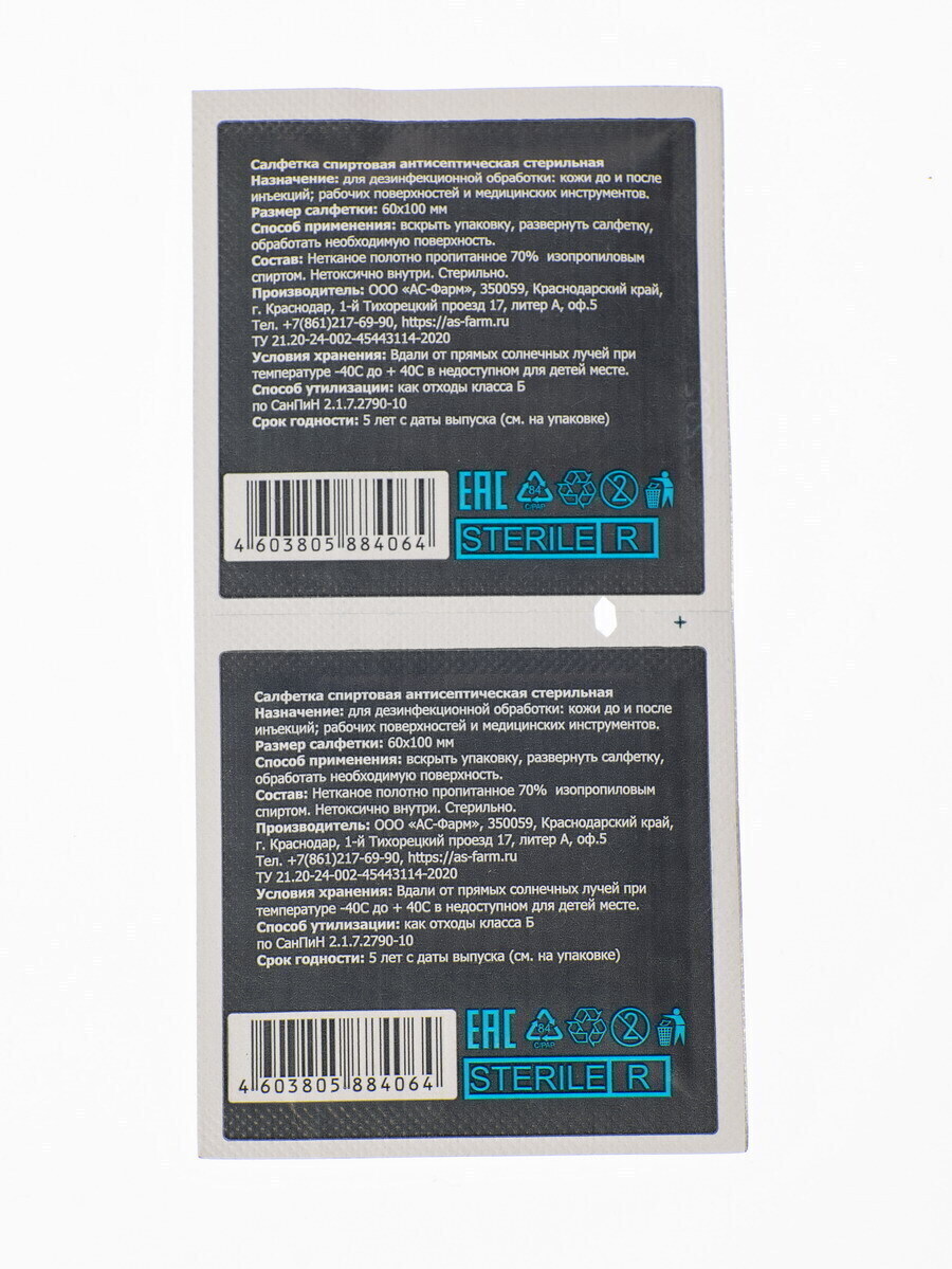 Салфетки спиртовые 200х250 (60 штук)