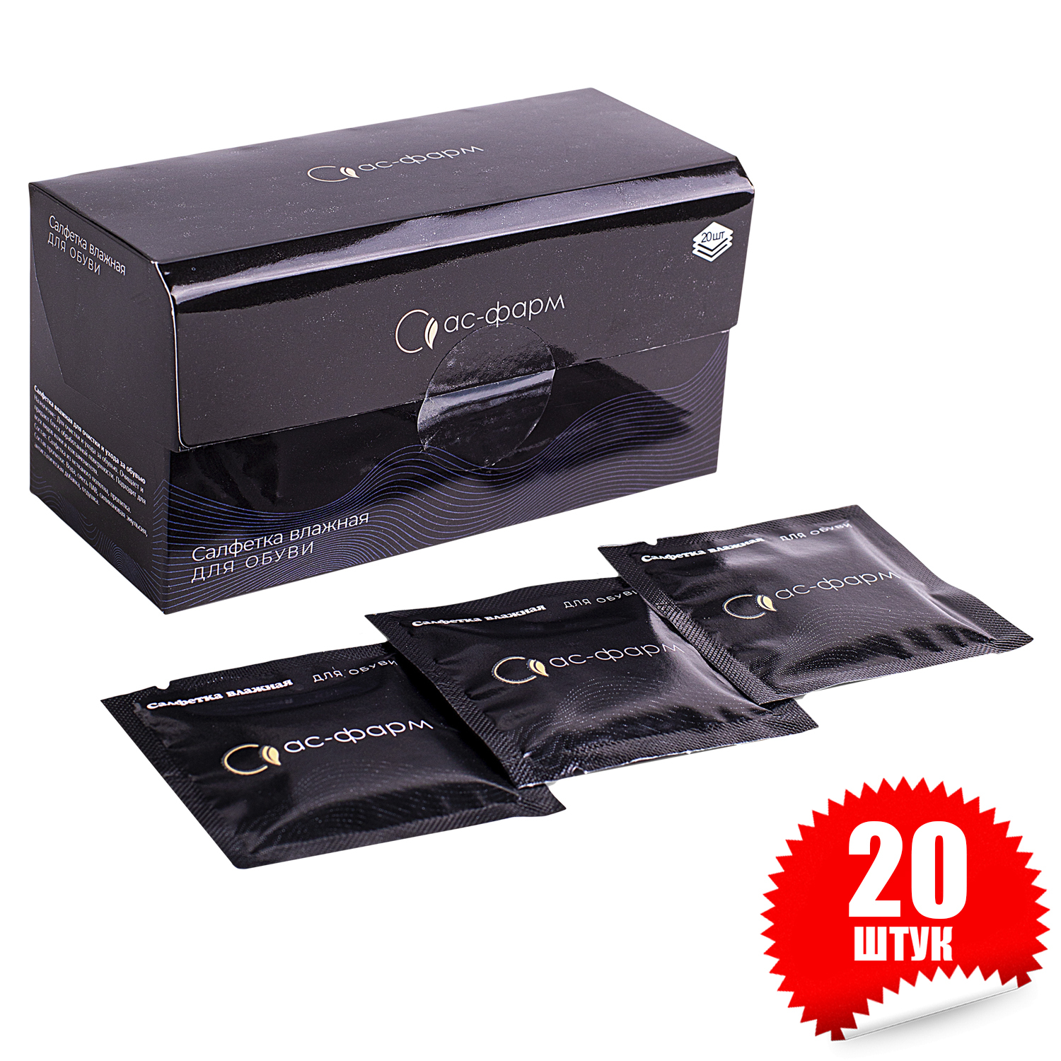 Влажные салфетки для обуви (20 штук)