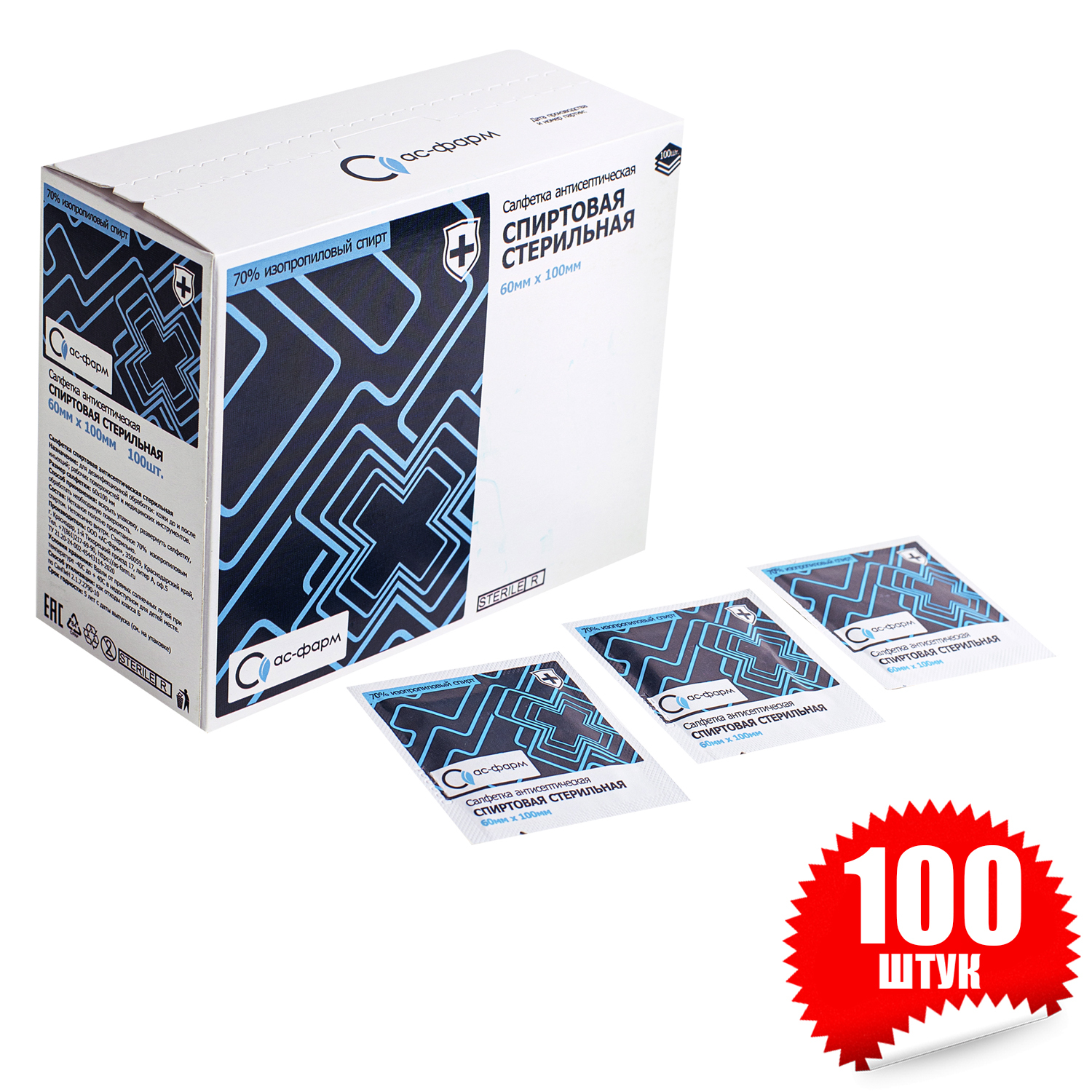 Салфетки спиртовые 60х100 (100 штук)