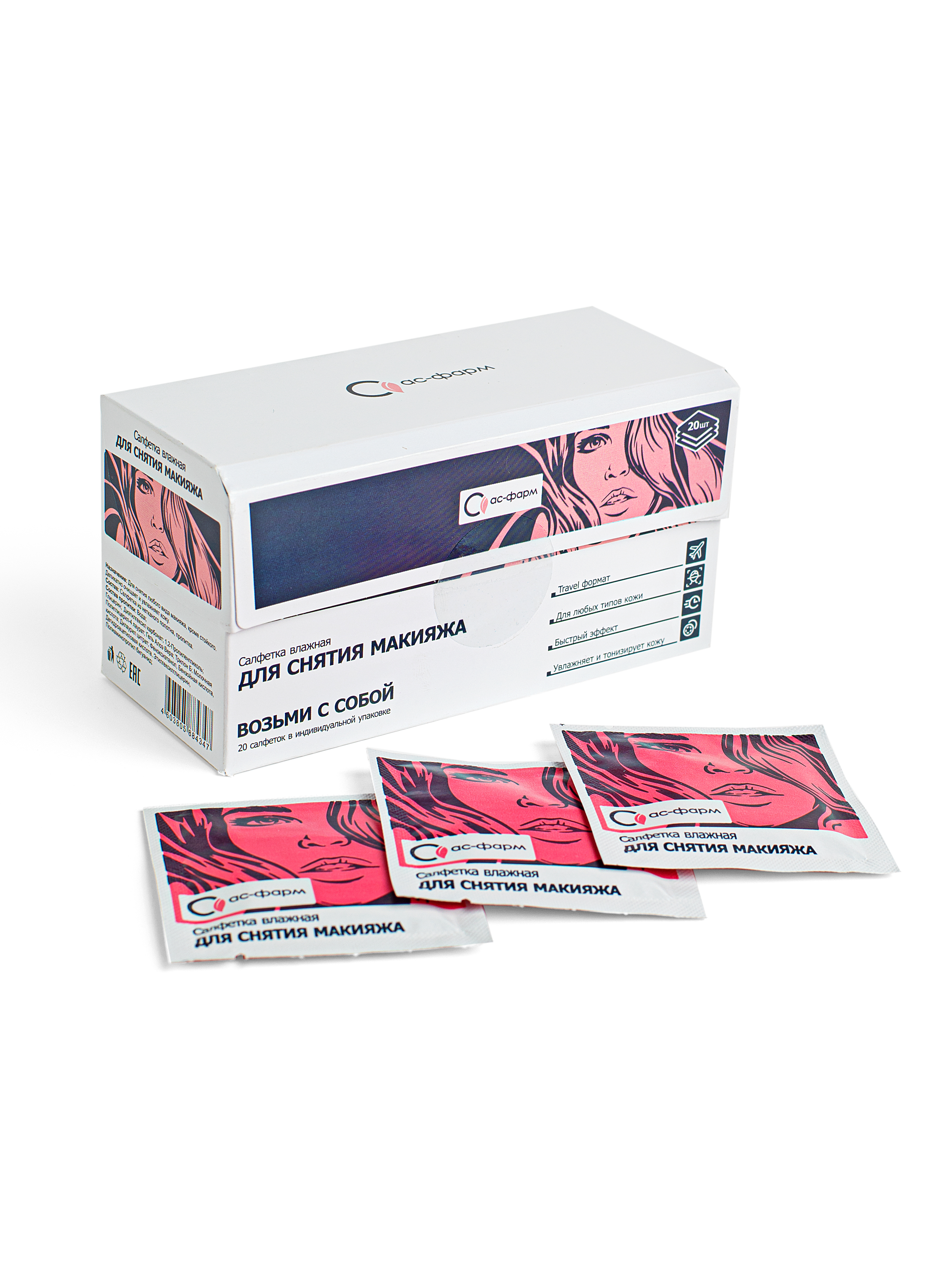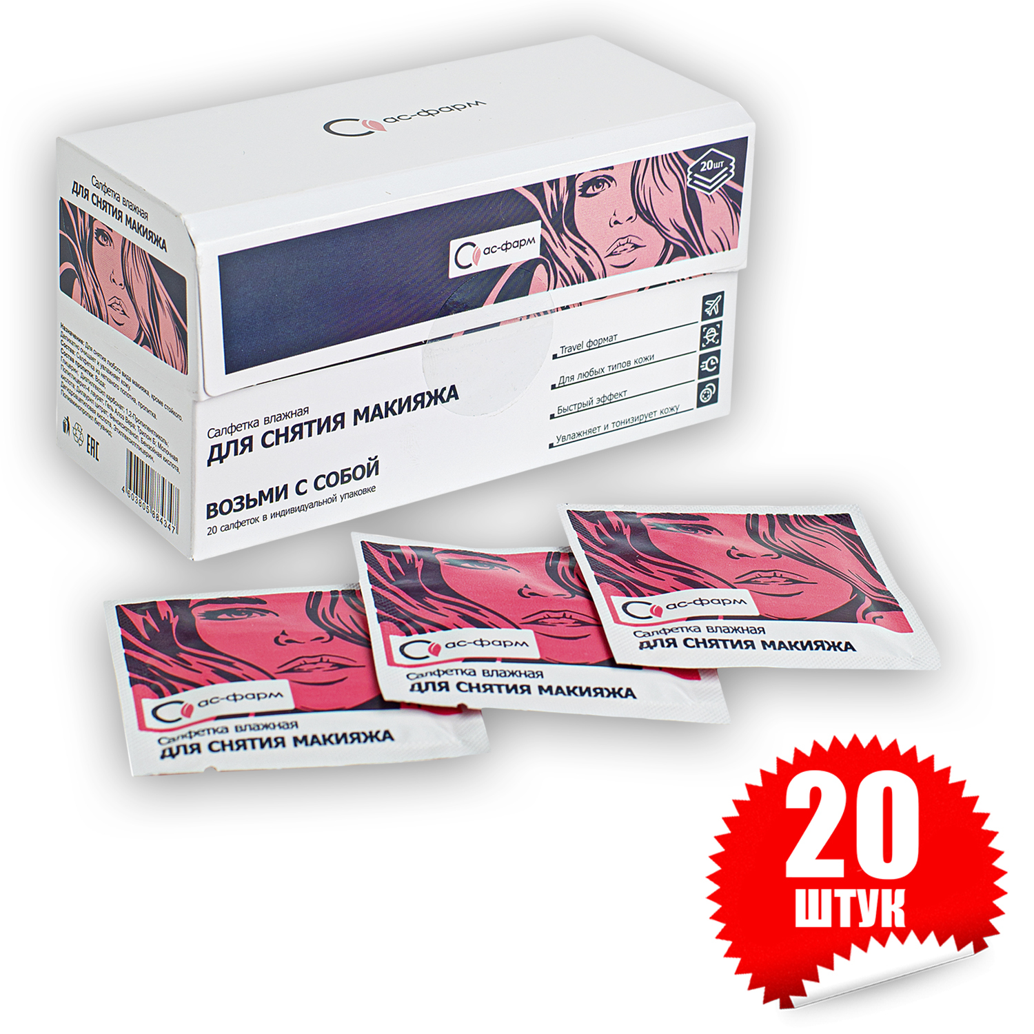 "АС-ФАРМ" влажные салфетки для снятия макияжа (20 штук)