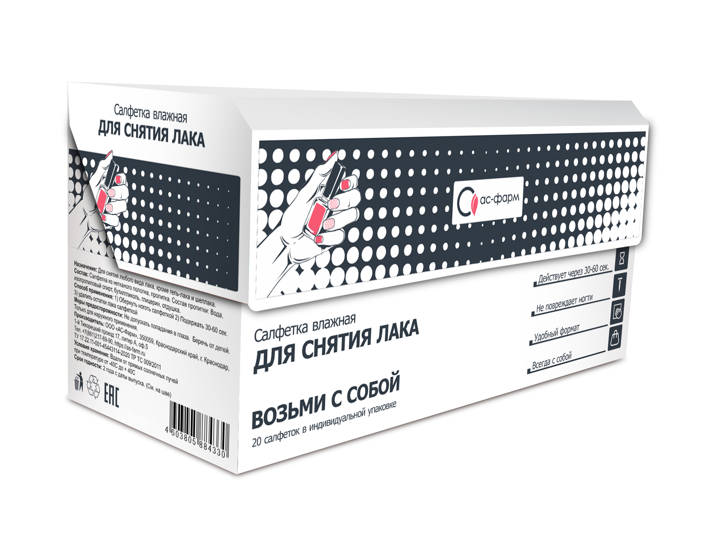 "АС-ФАРМ" Влажные салфетки для снятия лака (20 штук)
